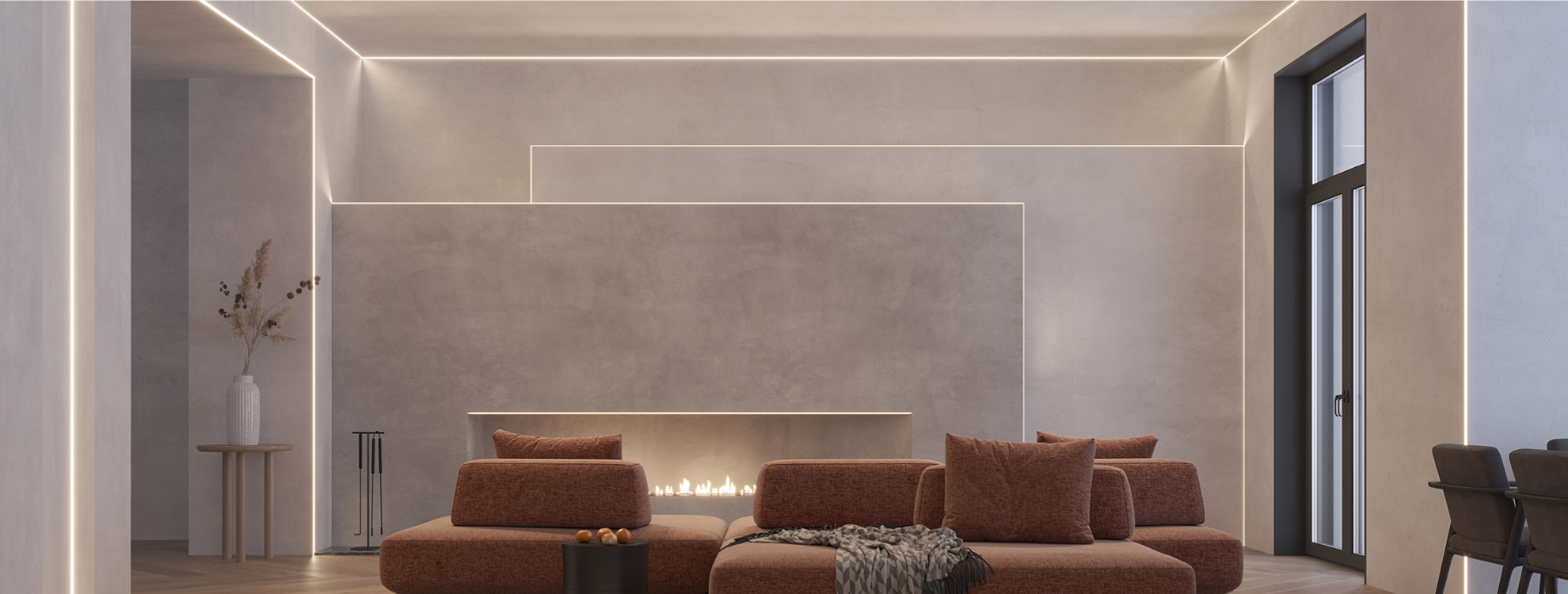 Скрытый фланец Конструкция профиля скрывается под строительной отделкой, благодаря чему видимой остается только световая линия.