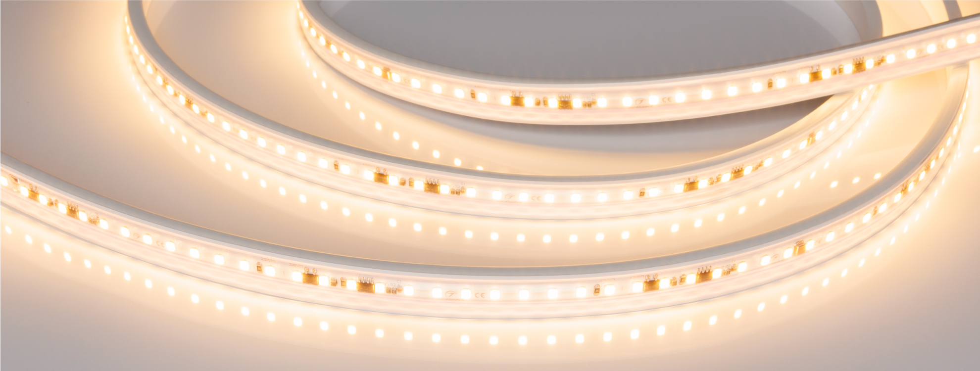 Оболочка обеспечивает защиту от ультрафиолета, поэтому светодиодную ленту можно использовать в помещениях и на улице.