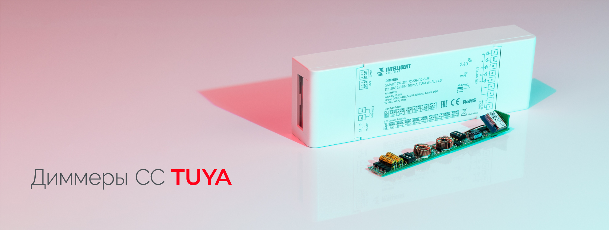 Диммеры TUYA предназначены для управления светодиодными светильниками и мощными светодиодами, питаемыми при помощи постоянного тока, через интерфейс TUYA (по Bluetooth или Wi-Fi).