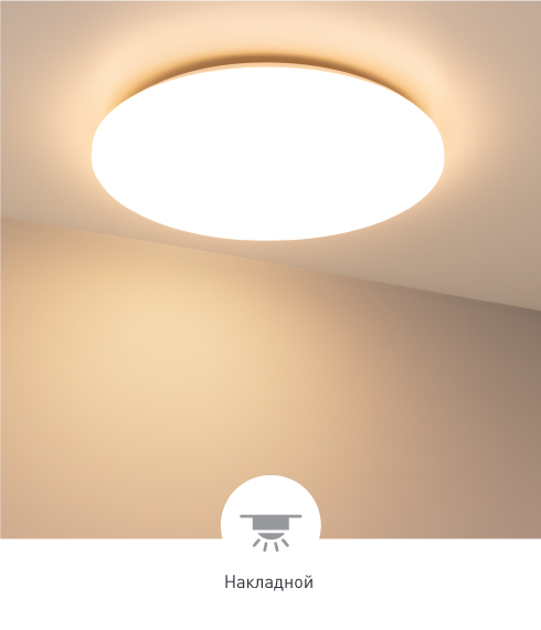 Стильный дизайн Современный минималистичный светильник белого цвета мощностью 50 Вт и диаметром 570 мм. Индекс цветопередачи CRI>90 обеспечивает естественную передачу оттенков интерьера. Степень пылевлагозащиты IP20. Гарантийный срок — 3 года.