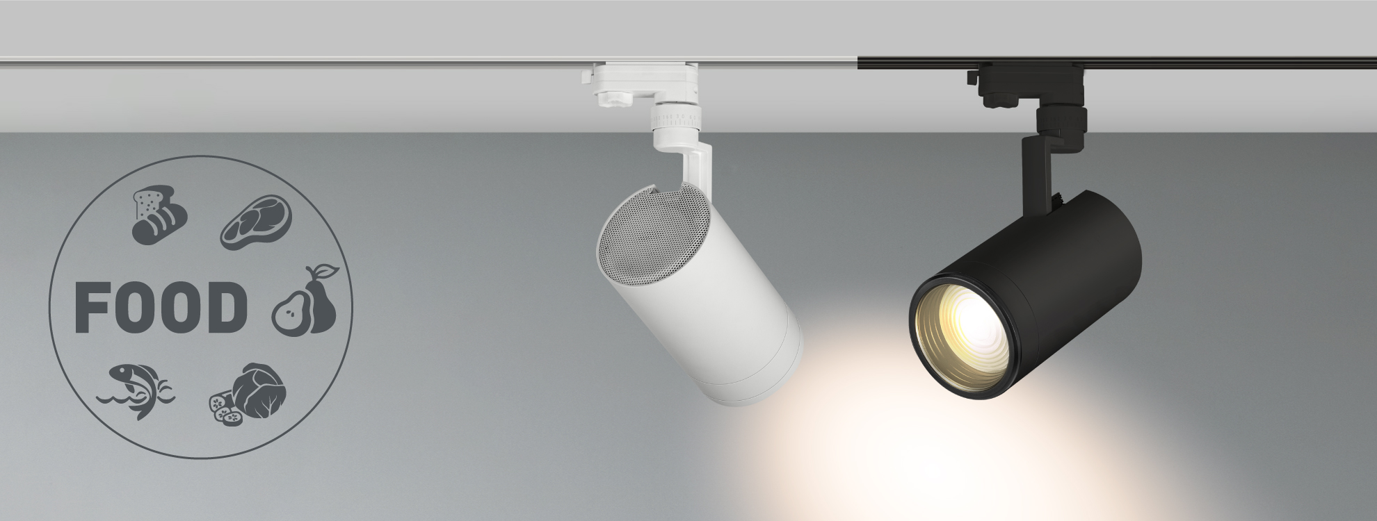 Устанавливаются на трехфазный трек длиной 1, 2, 3 или 4 м. Светильники можно свободно перемещать вдоль трека и подсвечивать именно те продукты, которые необходимо.