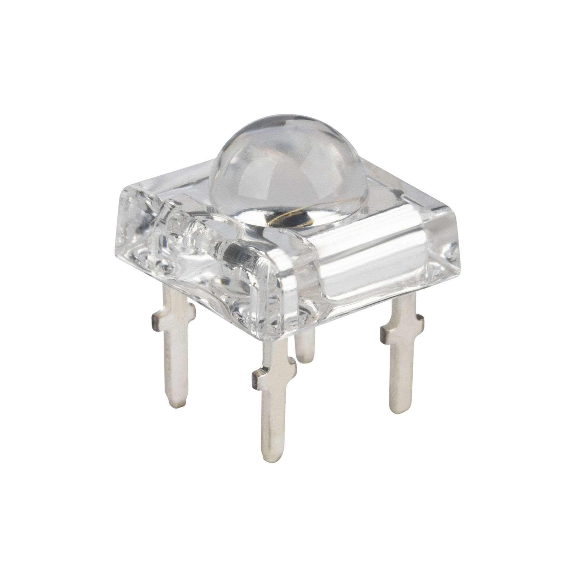 Выводные светодиоды различного диаметра (от 3 до 10 мм) и цвета свечения (в том числе двухцветные и RGB) изготовлены с применением различных материалов первичной оптики. Кристалл помещен в корпус со специальной линзой (прозрачной или окрашенной), которая формирует нужный световой пучок (узкий от 10 до 60° или широкий 120-140°). Данный тип светодиодов применяется в модулях индикации электронных приборов, устройств типа «бегущая строка» и «табло», в специальных устройствах (дорожные знаки и светофоры), световых украшениях или игрушках с подсветкой.