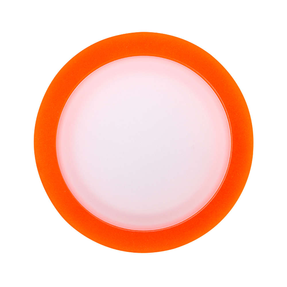 Круглый светильник с контурным свечением. Корпус белый с морковно-оранжевым + вставка поликарбонат PC. Цвет БЕЛЫЙ ДНЕВНОЙ 4000К, св.поток 400 лм, угол 120°+180°. Питание 110-240VAC, 5Вт, 300mA 15-18V, драйвер в комплекте. Размеры 80х40 мм, установка в отв.65 мм, высота мин.40 мм.