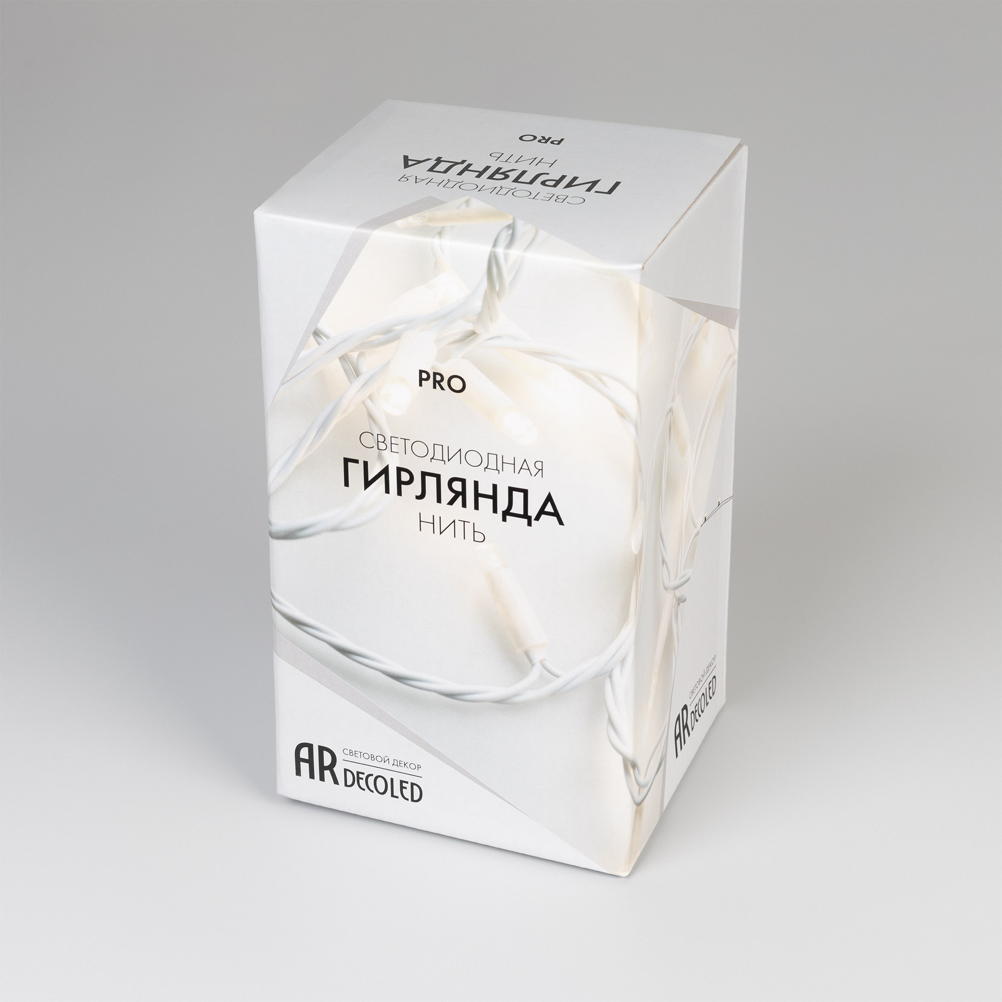 Универсальная светодиодная гирлянда "НИТЬ" серии Pro, предназначенная для декорирования и создания праздничного настроения как внутри помещений, так и снаружи (степень пылевлагозащиты IP65 позволяет размещать гирлянду на улице под навесом). Имея длину 10000 мм, она может использоваться для оформления средних и больших площадей. Универсальные соединительные разъемы позволяют наращивать длину до 50 м без использования дополнительных аксессуаров. Прозрачная вогнутая линза и эффект непрерывного свечения обеспечивают яркое, равномерное освещение, выделяя украшаемые объекты. Теплый белый свет, в сочетании с холодным белым, помогает создать необходимую атмосферу для декоративного объекта. Провод изготовлен из каучука и окрашен в чёрный цвет. Аксессуары для подключения гирлянды к сети и управления приобретаются отдельно.