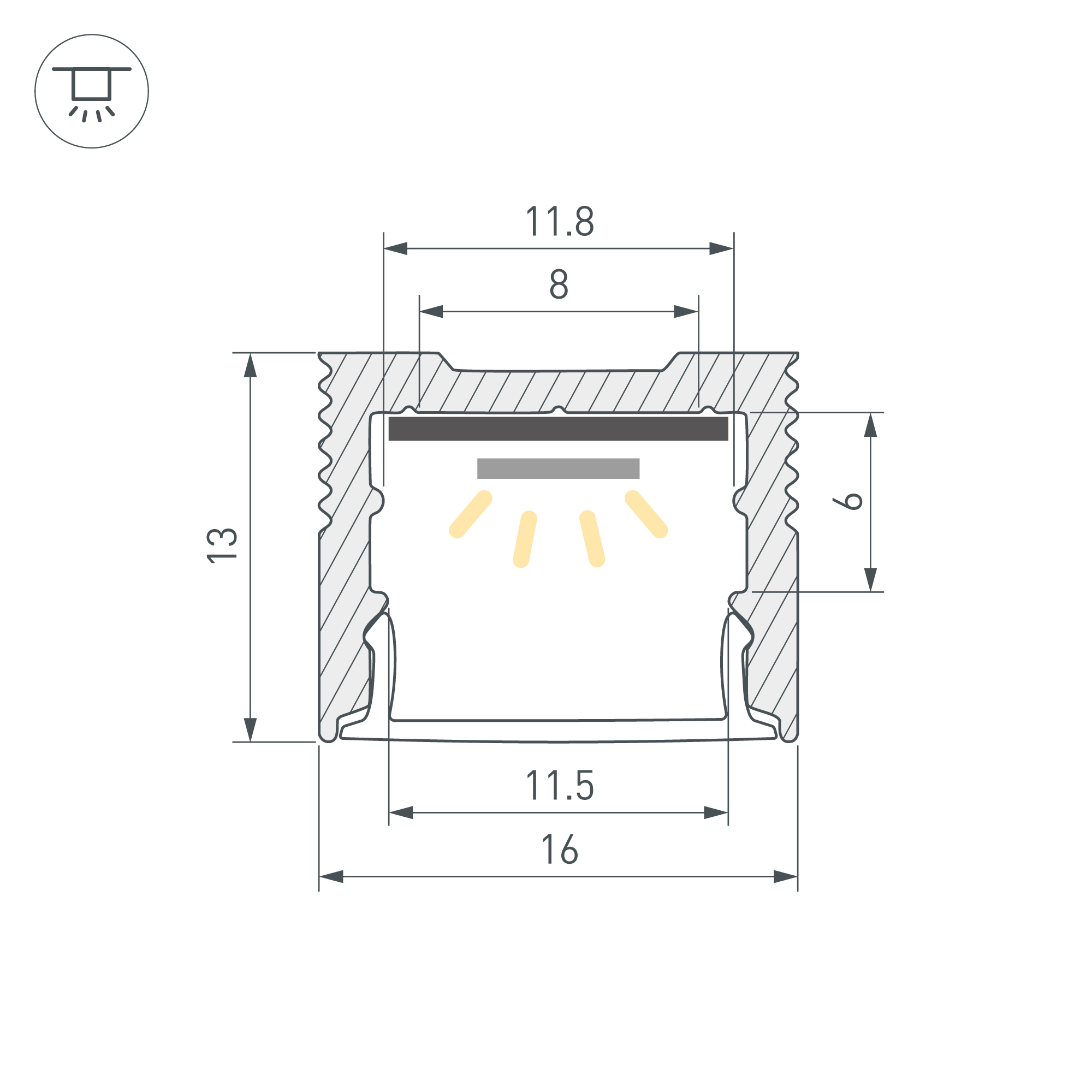 Комплект с экраном. Алюминиевый анодированный профиль для светодиодных лент и линеек. Габаритные размеры (L×W×H): 2500x16x13 мм. Ширина площадки для ленты 11,8 мм. Аксессуары приобретаются отдельно. Упакован в картонный тубус диаметром 31 мм. Цена за комплект: профиль - 2,5 м, экран - 2,5 м.