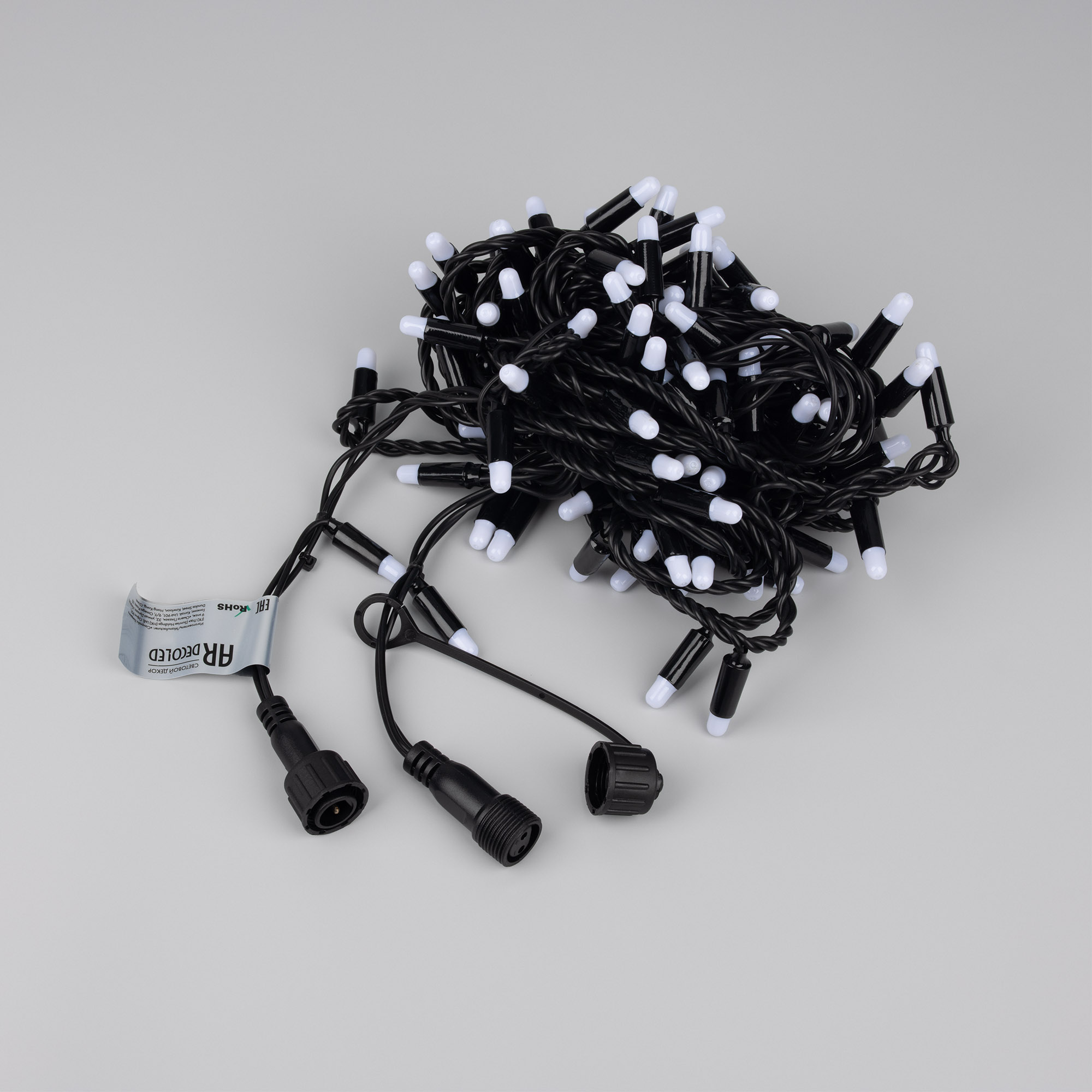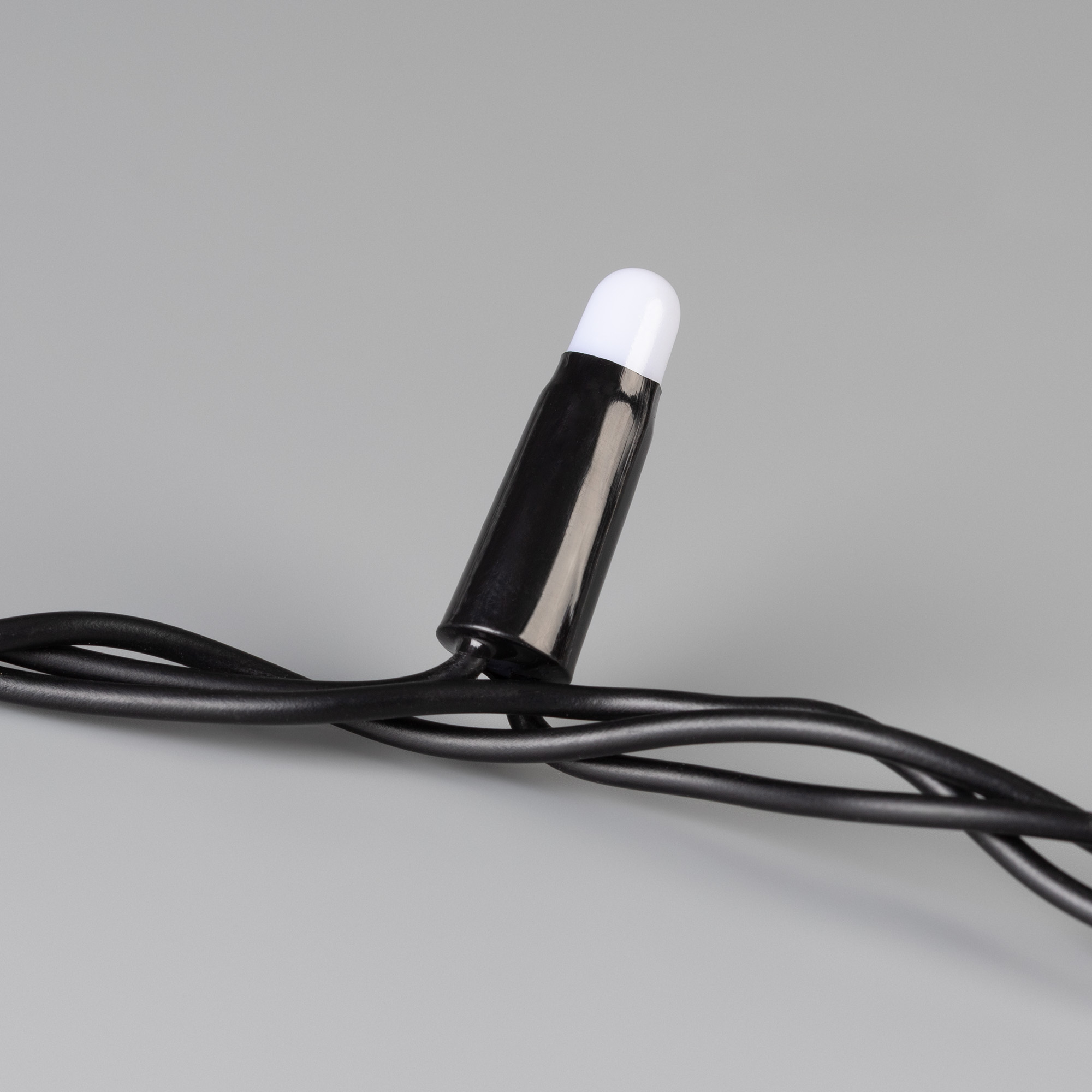 Универсальная светодиодная гирлянда "НИТЬ" серии Classic, предназначенная для декорирования и создания праздничного настроения как внутри помещений, так и снаружи (степень пылевлагозащиты IP65 позволяет размещать гирлянду на улице под навесом). Имея длину 10000 мм, она может использоваться для оформления средних и больших площадей. Универсальные соединительные разъемы позволяют наращивать длину до 50 м без использования дополнительных аксессуаров. Выпуклая молочно-белая линза и эффект мерцания редких точек обеспечивают мягкое и динамичное освещение украшаемых объектов. Холодный белый свет помогает создать необходимую атмосферу для декоративного объекта. Провод изготовлен из ПВХ и окрашен в чёрный цвет. Аксессуар для подключения гирлянды к сети приобретается отдельно.