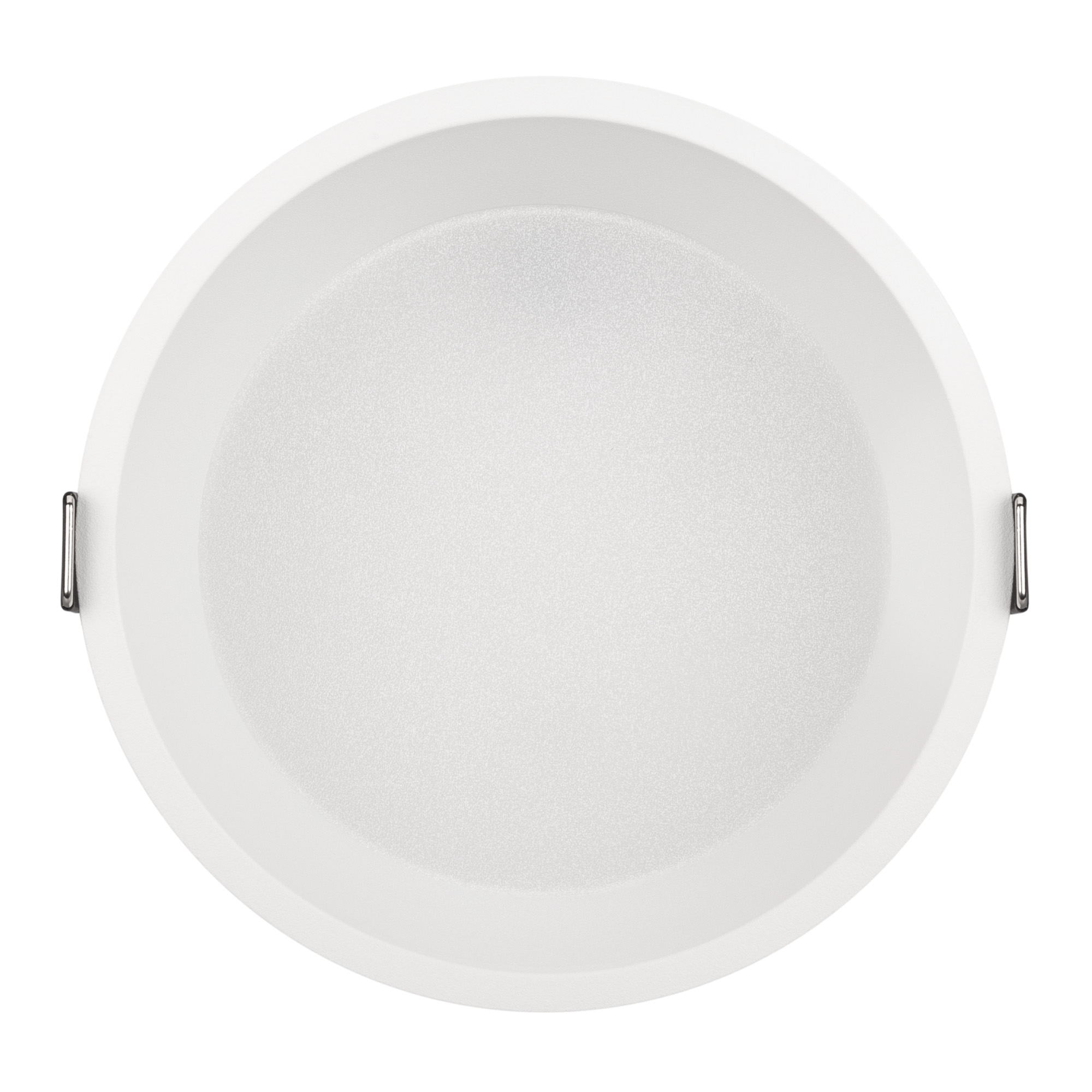 Встраиваемый светильник даунлайт. Мощность 16 Вт, св. поток 1220 лм, 76 лм/Вт, дневной 4000 K, CRI>90, угол 90°, напряжение питания 230 В. Белый круглый корпус из алюминия, степень защиты IP20. Размер: диаметр 125 мм, высота 60 мм. Монтаж встраиваемый, установочное отверстие: диаметр 115 мм. Драйвер 27-42 В, 400 мА, пульсация <2%.
