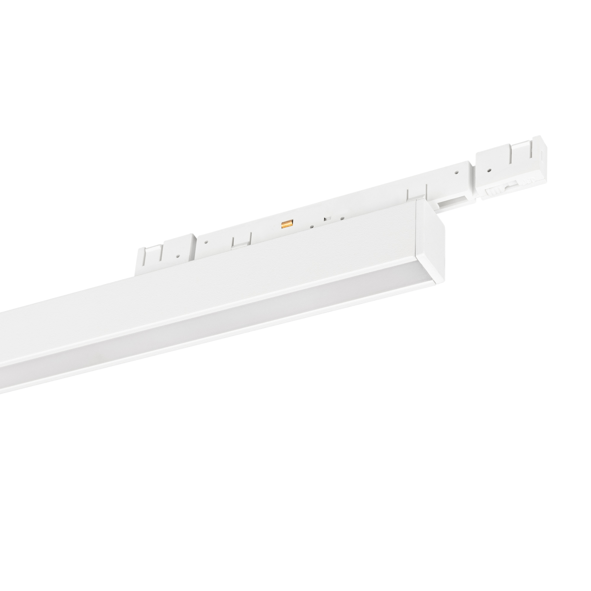 Светильник для магнитных треков MAG-MICROCOSM шириной 11 мм. Мощность 20 Вт, св. поток 800 лм, 40 лм/Вт, теплый 3000 K, CRI>90, угол 100°, напряжение питания 24 В. Белый фигурный корпус из алюминия, экран поликарбонат, степень защиты IP20. Габариты общие: 640,5х12х29,2 мм. Размер светодиодной части: 588х112х16,2 мм. Монтаж на трек MICROCOSM. Пульсация <1%.