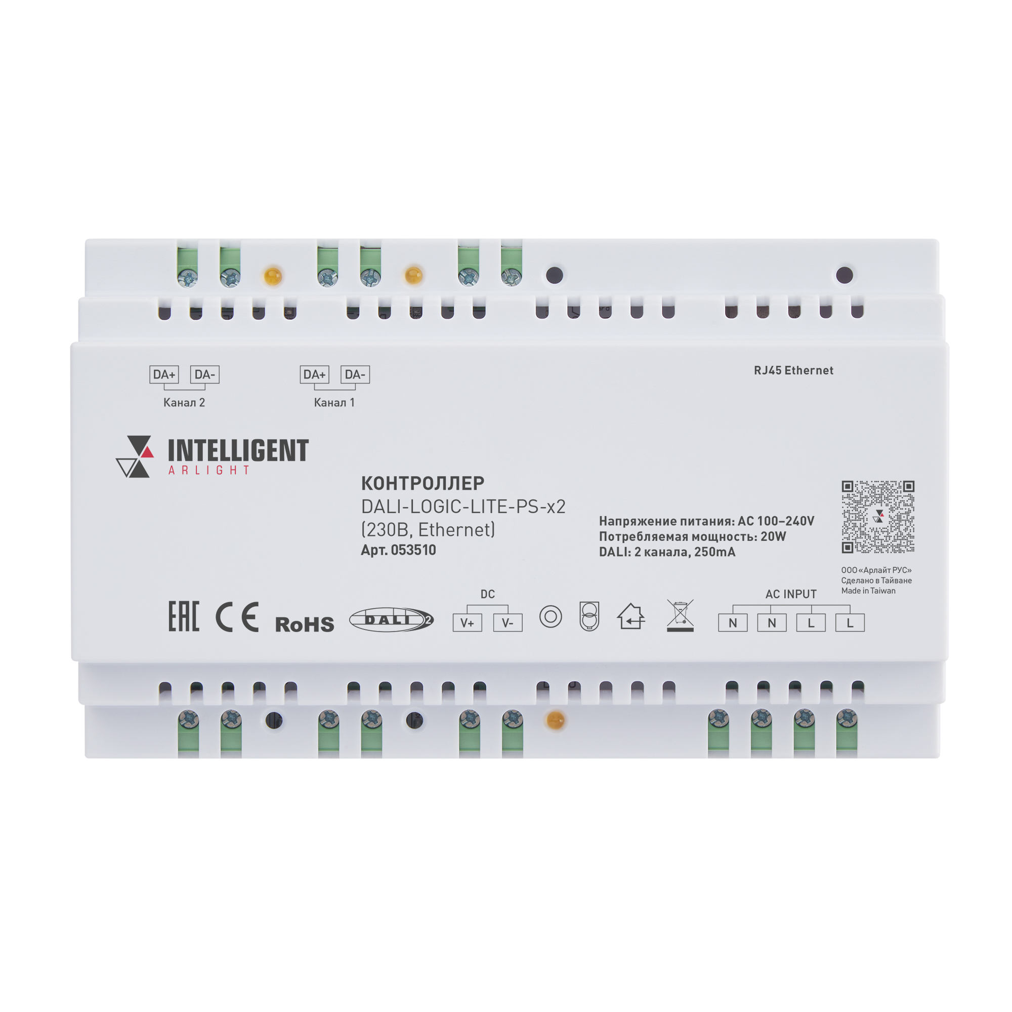 INTELLIGENT ARLIGHT Контроллер DALI-LOGIC-LITE-PS-x2 (230B, Ethernet) (IARL, IP20 Пластик, 2 года)