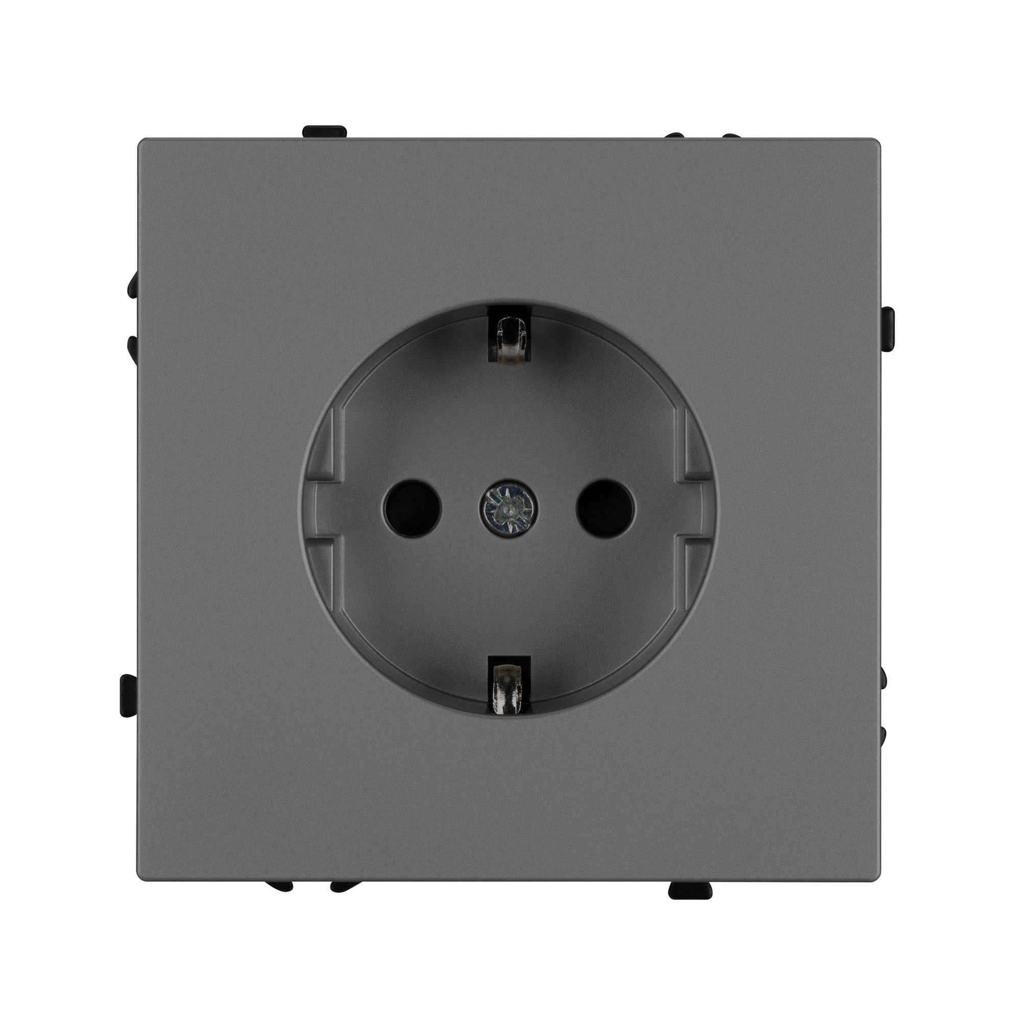 Механизм розетки с заземлением на 1 пост. Цвет - серый, с Soft-Touch покрытием. Без фронтальной рамки. Уровень пылевлагозащиты IP20. Розетка устанавливается в стандартный подрозетник круглого сечения диаметром 60мм. Габаритные размеры: длина 71 мм, ширина 71 мм, высота 44 мм. Гарантийный срок 10 лет.