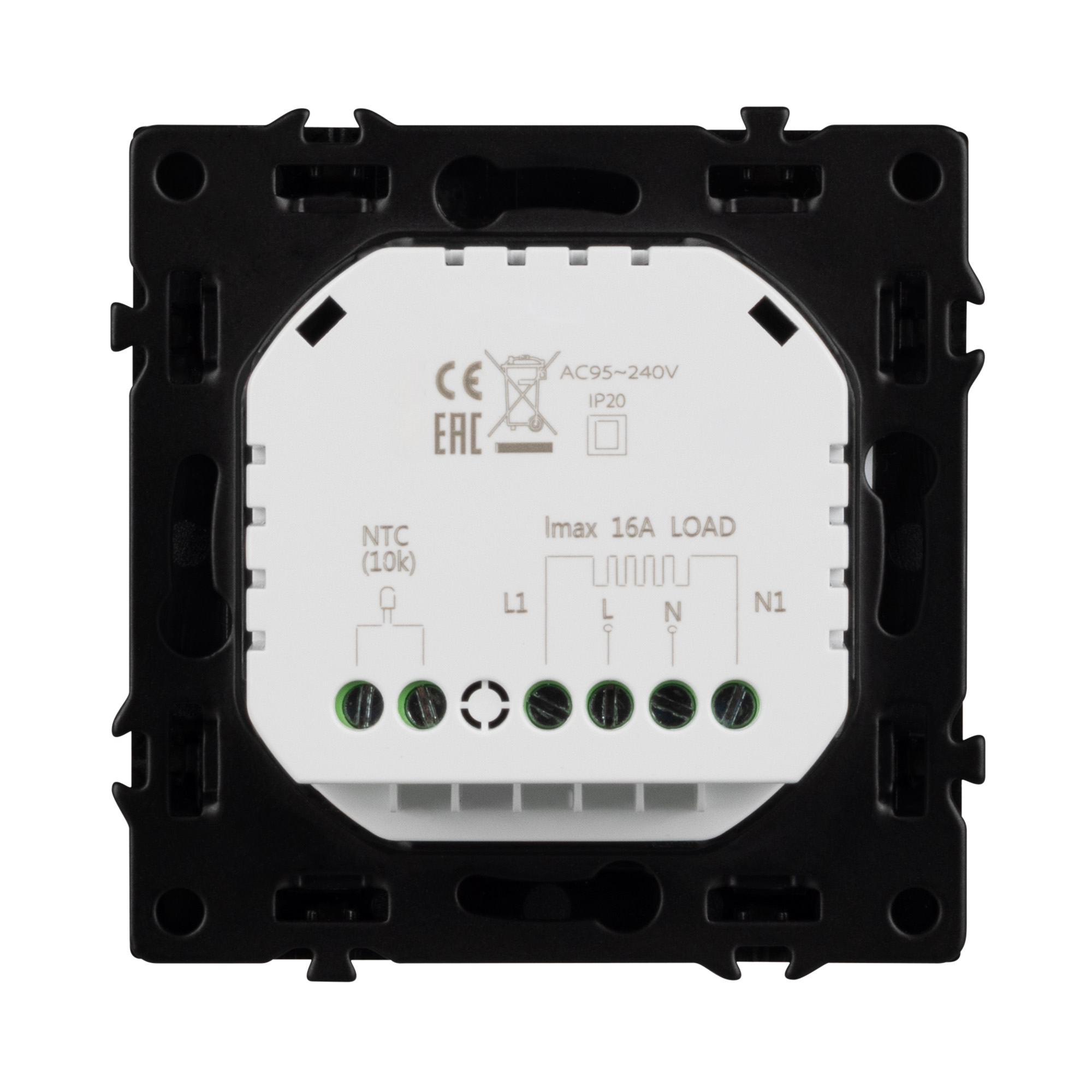 Строгие геометрические линии гармонично сочетаются с функциональностью продуманных механизмов, создавая идеальное решение для дизайн-проектов, где важны как эстетика, так и практичность. Терморегулятор совместим с рамками серии NOBE, создает утонченный минималистичный вид. Скрытый тип монтажа позволяет гармонично встроить в интерьер любого современного дизайн-проекта. Видимая часть механизма выполнена из глянцевого поликарбоната цвета белый кварц, что придает изделию приятные тактильные ощущения и стильный внешний вид. Настройка работы электрического теплого пола осуществляется за счет выбора необходимых значений не посредственно как на самом устройстве, так и при подключении по беспроводной сети Zigbee в приложениях SmartLife и Умный Дом (Яндекс). Суппорт окрашен в черный матовый цвет под основу механизма и выполнен из металла толщиной 1,5мм, что обеспечивает безопасность и уверенность в установке. На каждой стороне суппорта размещены фиксирующие элементы, позволяющие комбинировать механизмы в системы до 5шт как горизонтально, так и вертикально.
