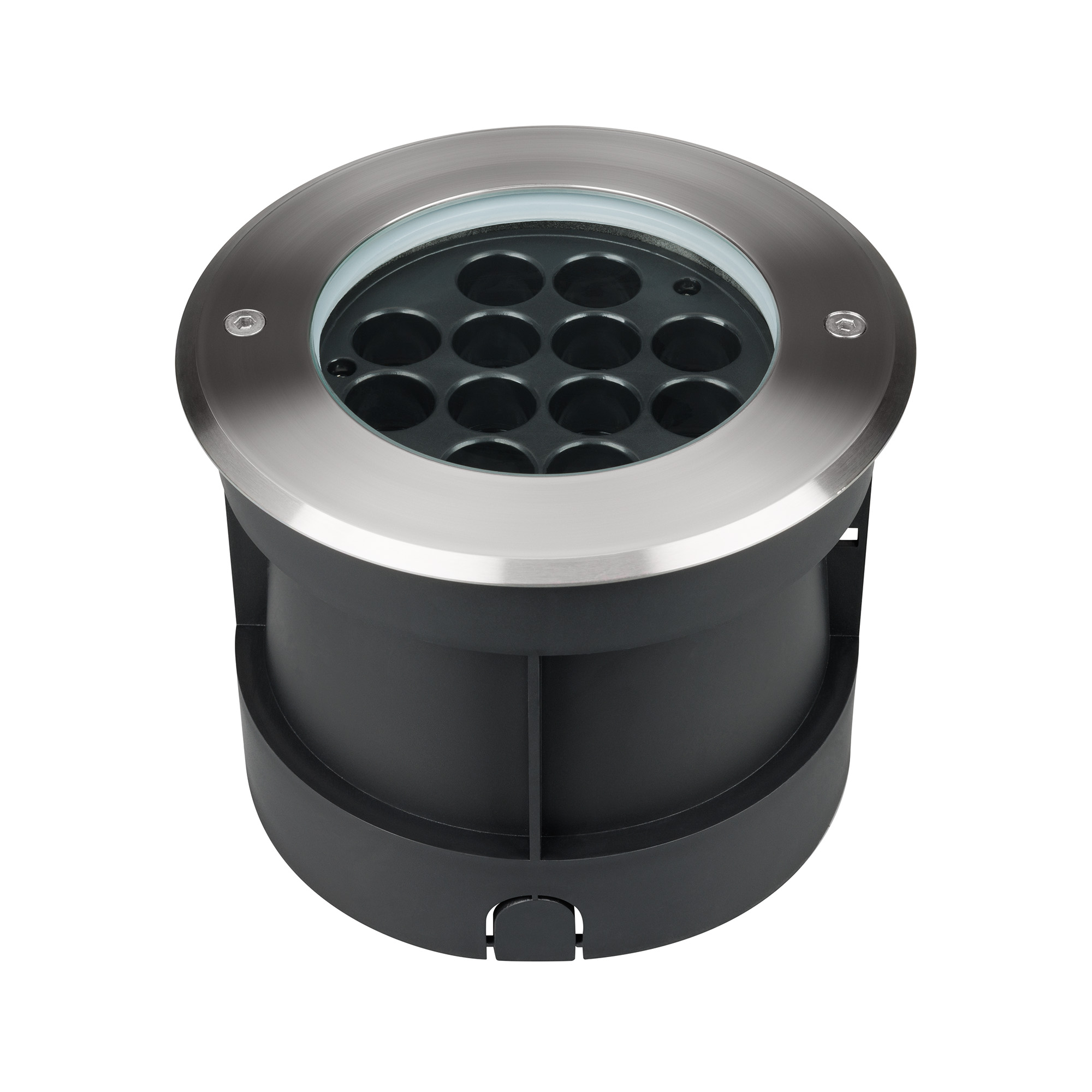 Встраиваемый светодиодный светильник LTD-DAFNA мощностью 25 Вт, теплого цвета свечения (3000К), со световым потоком 2157 лм предназначен для ландшафтного освещения парковых и садовых дорожек, придомовых территорий, а также декоративной подсветки фасада. Узкий угол излучения 35° позволяет создать четкий акцент на подсвечиваемом объекте. Ударопрочный круглый корпус из нержавеющей стали и алюминия Ø180x140 мм и экран из закаленного стекла толщиной надежно защищают оптический блок со светодиодом от внешних воздействий. Степень пылевлагозащиты корпуса на уровне IP67 рассчитана на длительное использование на открытом воздухе, а так же обеспечивает надежную работу в неблагоприятных условиях. Установка в отверстие ДxВ Ø166x137 мм. Светильник поставляется в сборе с драйвером и питающим кабелем, что позволяет легко и быстро подключить его к сети 230 В.