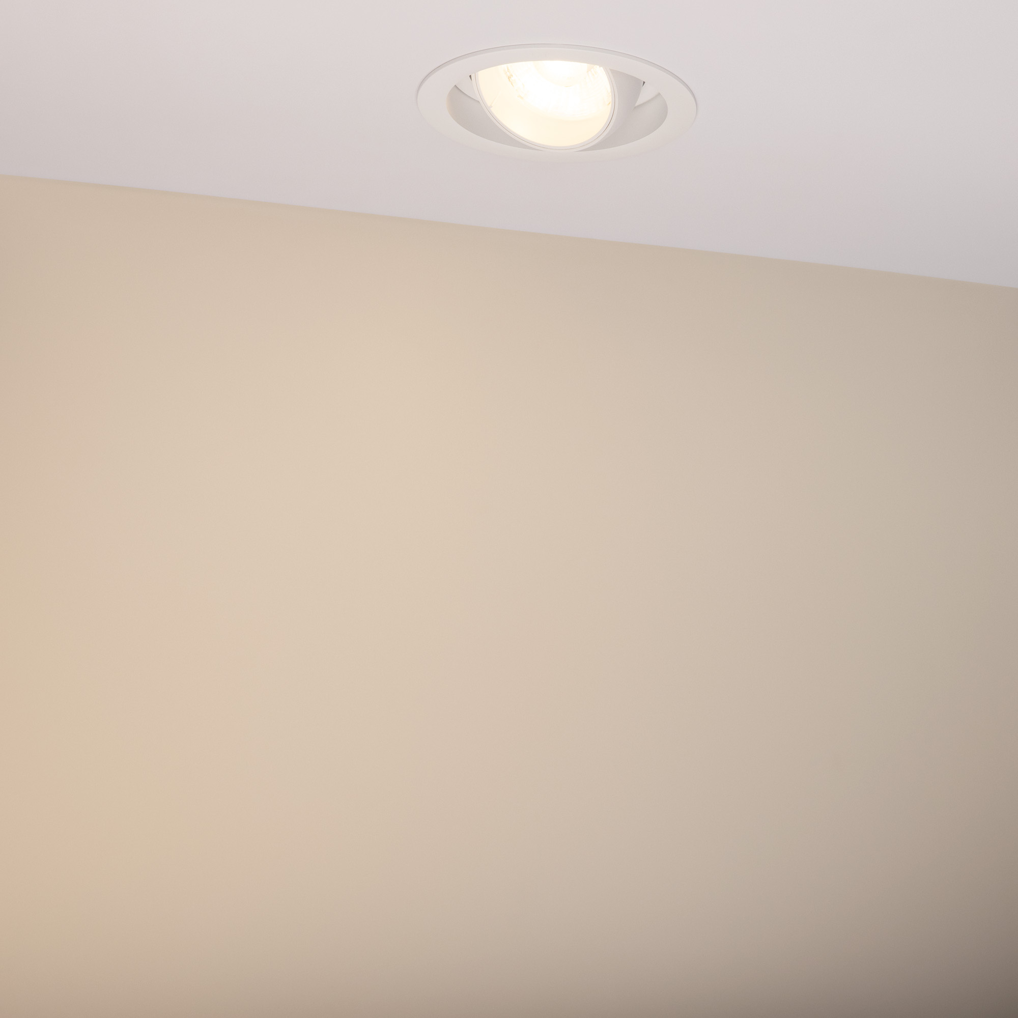 Встраиваемый карданный поворотный светильник с высоким индексом цветопередачи CRI>92 предназначен для создания качественного освещения. За основу поворотного механизма светильника взят принцип кардана – подвижное соединение двух колец, вложенных одно в другое. Световой модуль вращается вокруг своей оси на 360 градусов и отклоняется от горизонта на 30 градусов, что позволяет с лёгкостью регулировать направление пучка света и его концентрацию на определенной зоне. Особая конфигурация корпуса из алюминия оригинально смотрится в интерьере и позволяет эффективно отводить тепло. Светильник с углом рассеивания 30 градусов отлично подходит как для локальной акцентной подсветки витрин, прилавков магазинов, бутиков и стендов выставочных залов, так и для общего освещения. Легко устанавливается с помощью пружин в монтажное отверстие потолка. В комплекте поставляется драйвер, что позволяет безопасно и быстро подключать светильник напрямую к сети переменного тока 230 В.