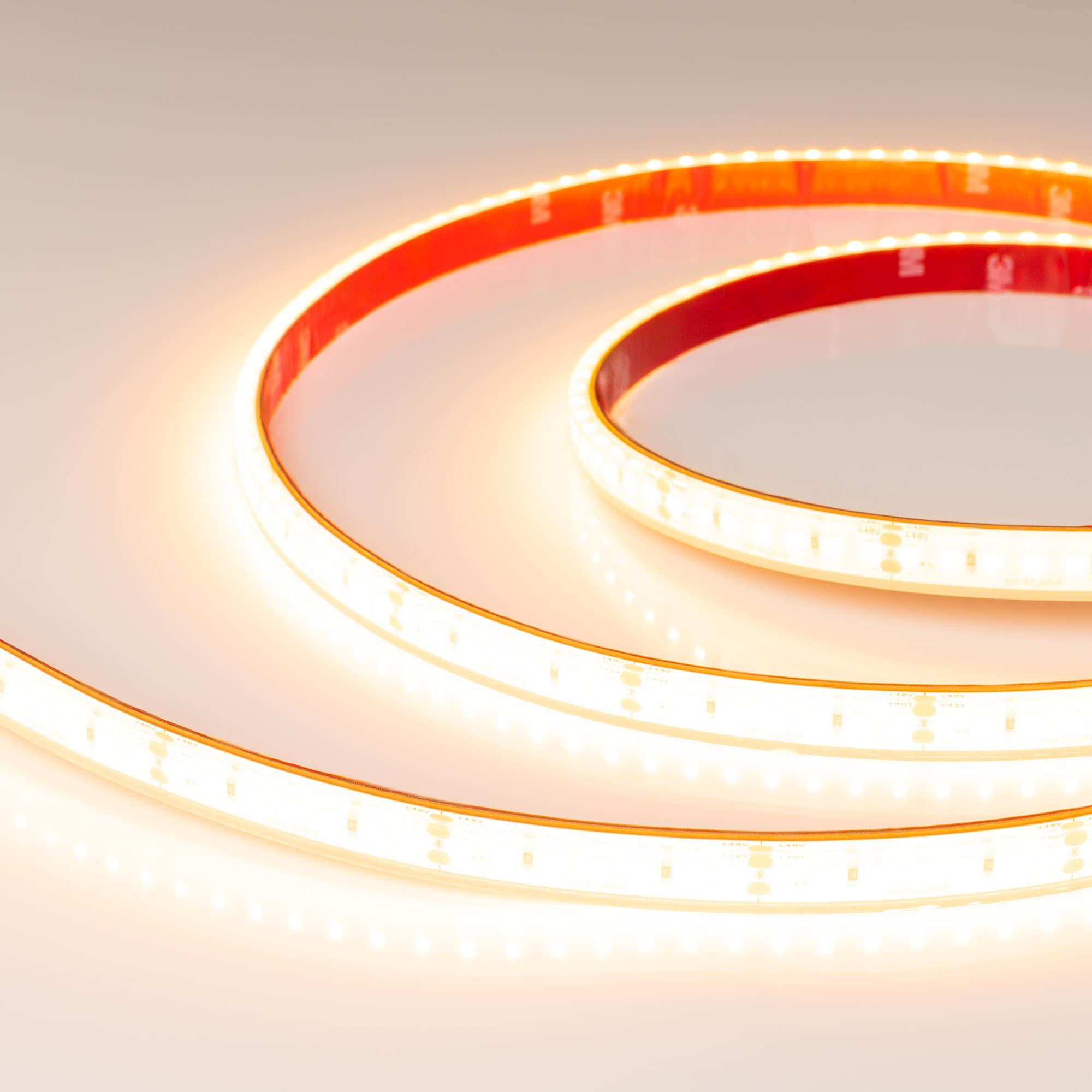 Светодиодная герметичная лента RTW серии A140, IP68 (PFS - полная силиконовая экструзия). Светодиоды SMD 2835, 140 шт/м, белая плата шириной 10 мм, скотч 3M. Цвет ТЕПЛЫЙ 2400K, индекс цветопередачи CRI>90, угол 120°. Питание 48 В, мощность 12 Вт/м (240 Вт на 20 м). Размеры 20000x12x6 мм. Мин. отрезок 50 мм, 7 светодиодов. Цена за 1 м. Диапазон рабочих температур -40..60°C.