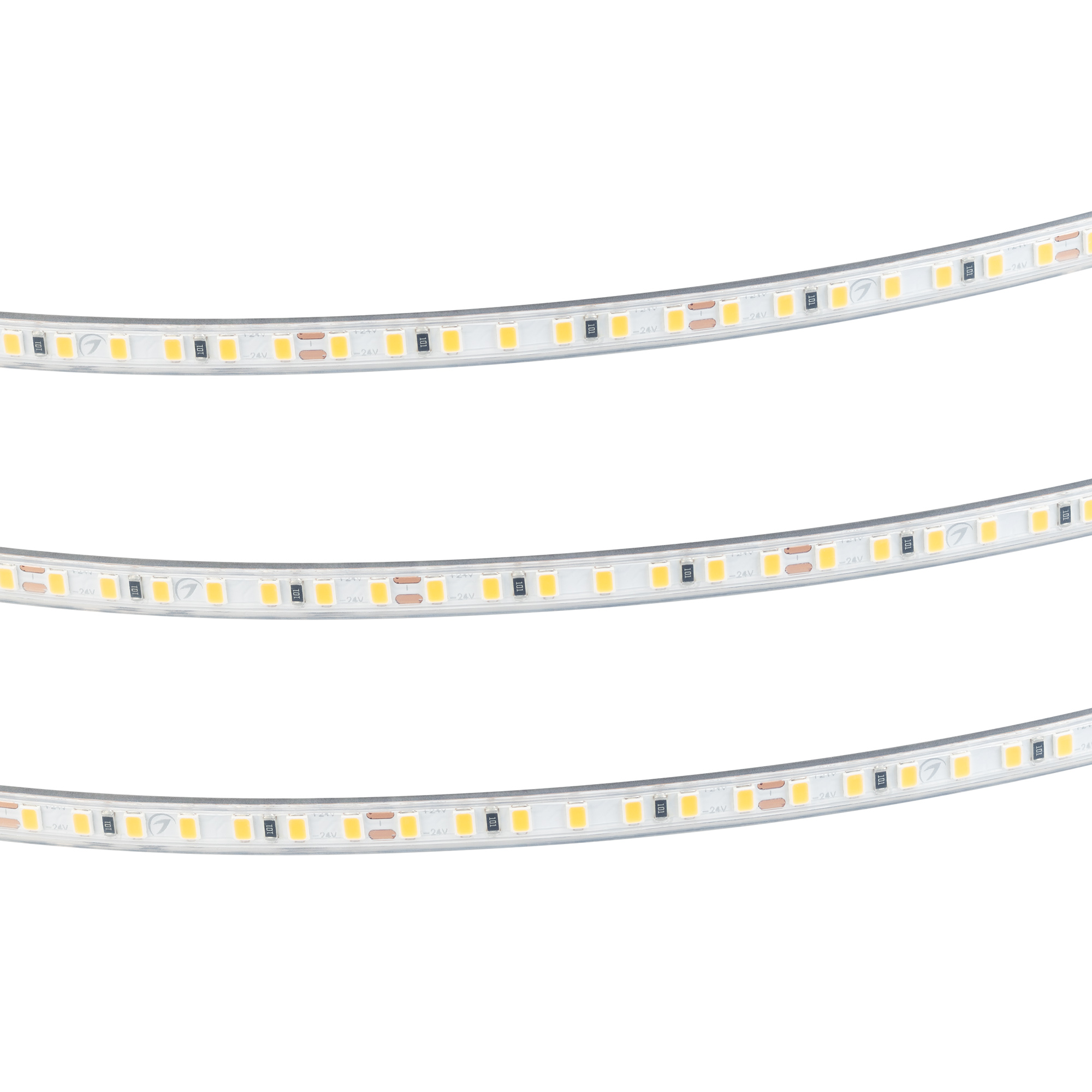 Узкая герметичная лента RTW серии A140. Степень защиты IP67, лента в силиконовой оболочке, устойчива к УФ излучению. Светодиоды SMD 2835, 140 шт/м, белого цвета свечения (6000K). Высокий индекс цветопередачи обеспечивает точное восприятие цветов при освещении любых коммерческих помещений и создании ландшафтного уличного освещения. Применяется для создания тонких световых декоративных линий в помещениях и на улице. В комплекте силиконовая заглушка под провод - 1 шт, силиконовая заглушка глухая - 2 шт. Обязательна установка на профиль.