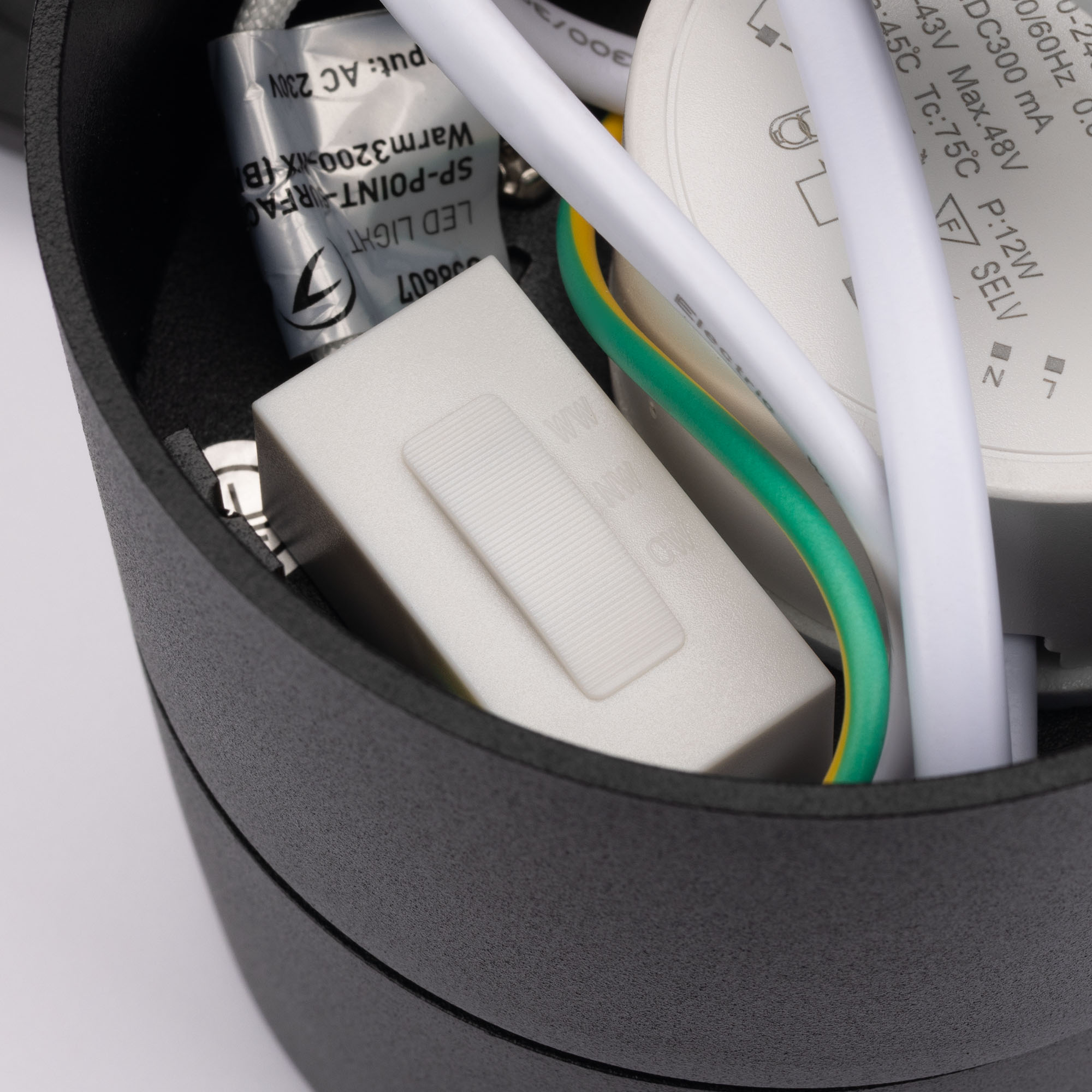 Накладной откидной поворотный светильник POINT-SURFACE мощностью 12 Вт c высоким индексом цветопередачи CRI>90 предназначен для акцентного освещения в жилых, торговых или выставочных помещениях с высокими требованиями к качеству света. Встроенный переключатель цветовой температуры позволяет легко установить необходимый оттенок в помещении, теплый 2700, 3200 или дневной 4000К. Светильник имеет уникальный корпус, который может поворачиваться вокруг своей оси и отклоняться по вертикали, что позволяет отрегулировать освещение на объекте. Корпус выполнен с дополнительной сотовой решеткой, которая снижает показатель дискомфорта (UGR<10). Светильник степенью пылевлагозащиты IP20 предназначен для установки внутри помещений, где нет контакта с водой или другими жидкостями. Узкий угол излучения позволяет создавать направленное освещение, подчеркивая детали интерьера. С помощью встроенного драйвера светильник легко и безопасно подключается напрямую к сети с напряжением питания 230 В. Низкая пульсация обеспечивает комфортное освещение без мерцания.