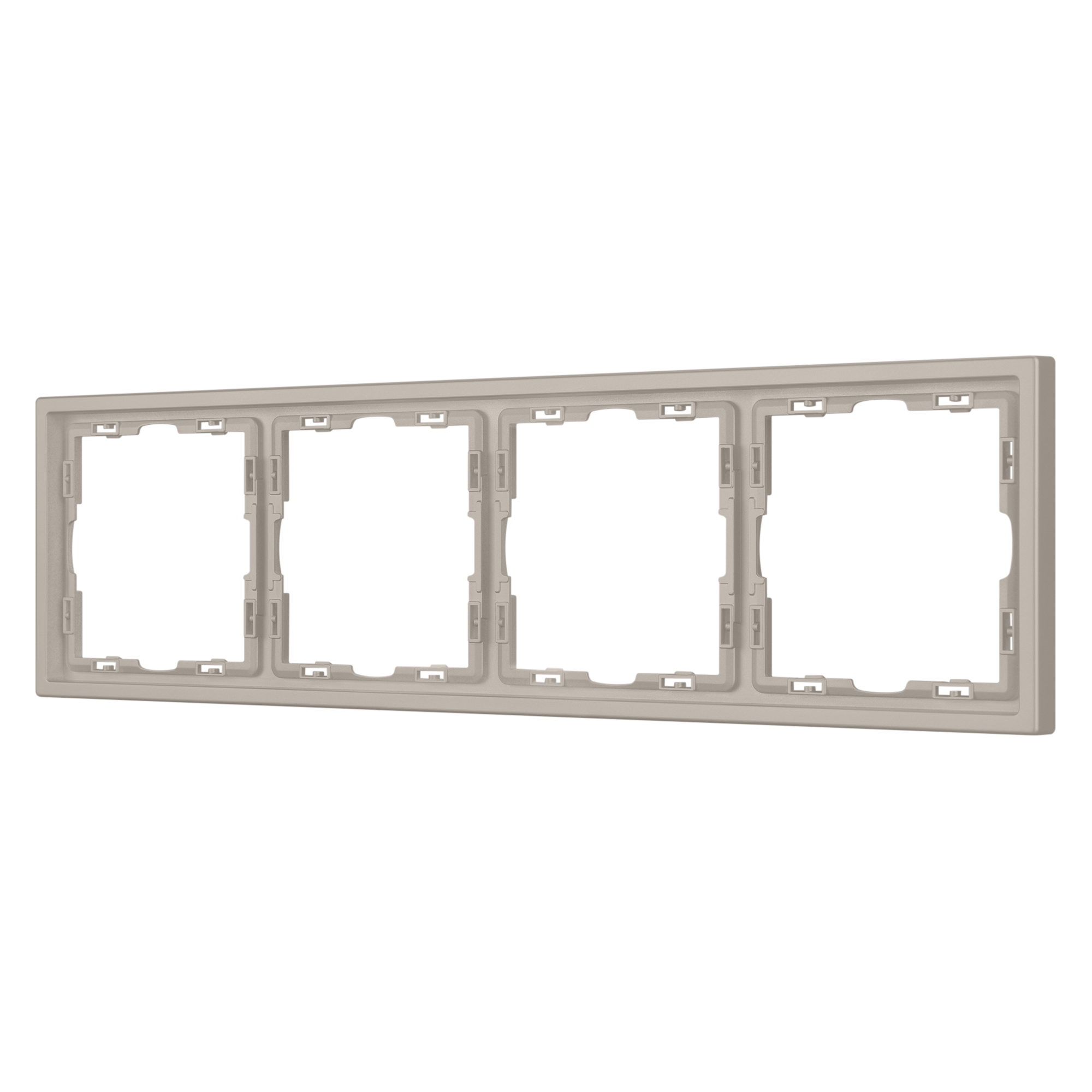 Корпус рамки выполнен в цвете кашемир и имеет покрытие Soft-Touch, что придает изделию приятные тактильные свойства. Толщина корпуса составляет 8,5 мм, что позволяет эффективно интегрировать рамку в интерьерные решения любого уровня сложности.