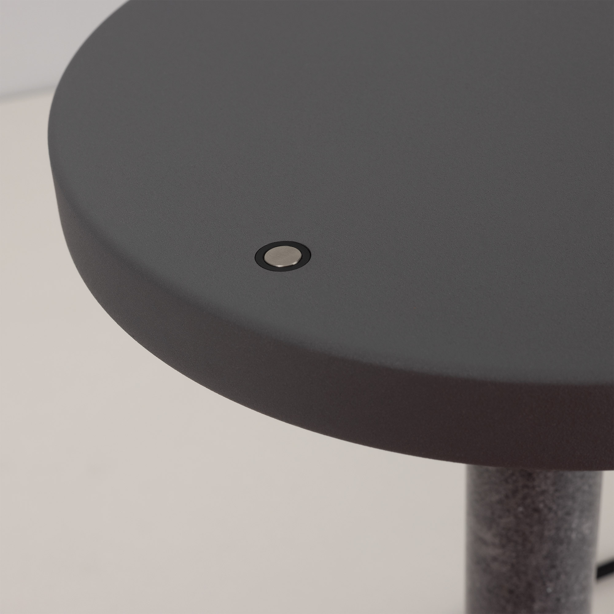 Настольный светильник ALYSS. С изменяемой цветовой температурой 2700/3200/4000К, переключается коротким нажатием на сенсорную кнопку на плафоне, диммирование происходит за счет ее удержания. Мощность 5 Вт, св. поток 195 лм, 39 лм/Вт, CRI>92, угол 110°, напряжение питания 230 В. Темно-серый корпус из алюминия, декоративная вставка из мрамора, степень защиты IP20. Размер: диаметр 225 мм, высота 300 мм. Пульсация <1%.