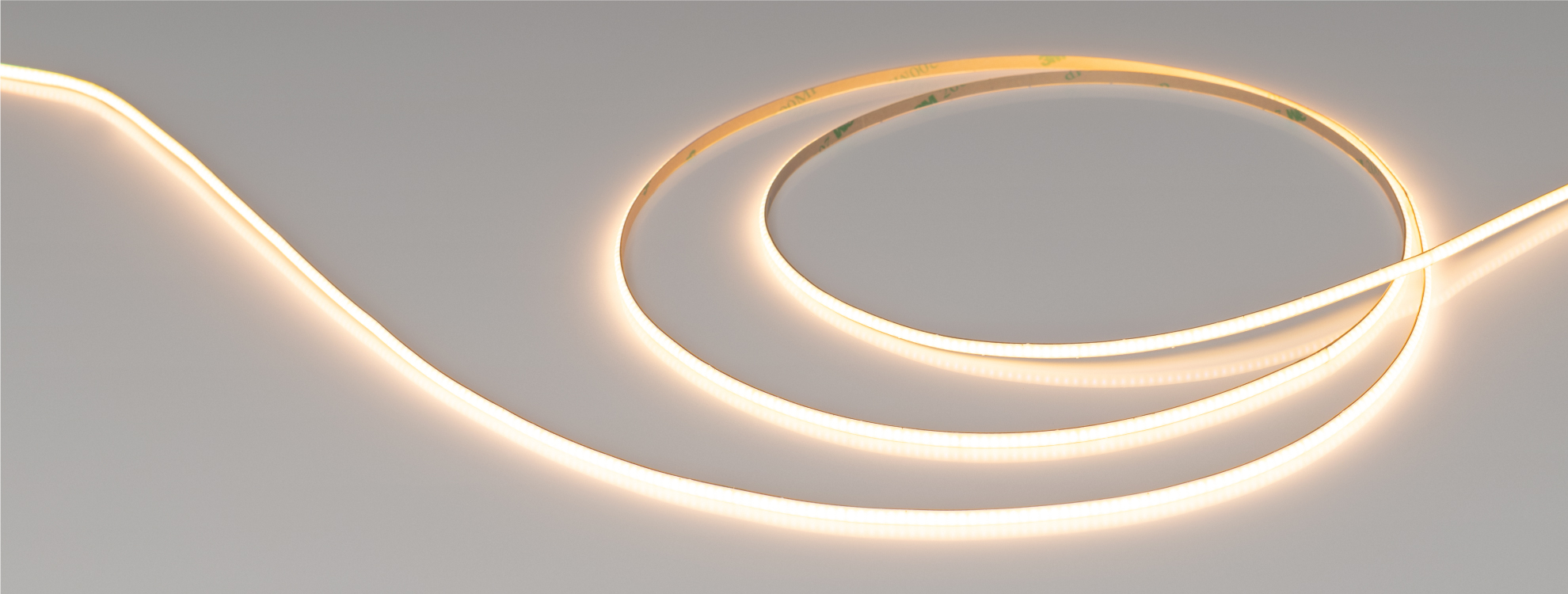 Основное преимущество бескорпусных лент COB — эффект сплошной линии света без применения рассеивателей (экранов). За счет заливки люминофором по всей длине ленты образуется равномерное свечение без видимых точек светодиодов. COB-ленты серии Х480 предназначены для декоративной подсветки интерьера, а также оформления рекламы и витрин. Тип светодиодов — CSP (X).