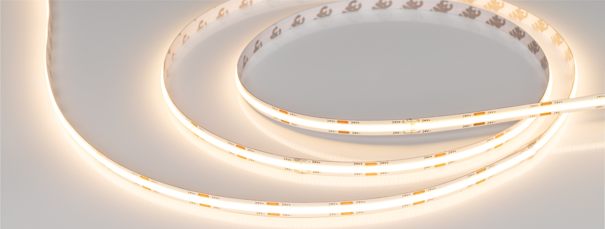 Светодиодные герметичные ленты COB-SE-X544 создают равномерное свечение без видимых диодов, что особенно важно для открытого монтажа и дизайнерских решений. Вам не нужны дополнительные рассеиватели или экраны. Высокая плотность светодиодов 544 шт/м обеспечивает эффект единой световой линии.