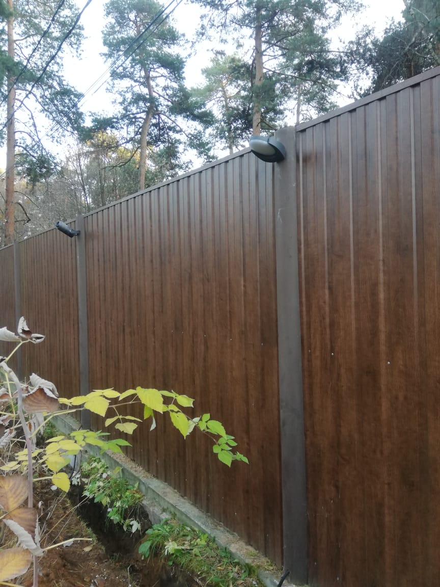 Для обозначения границ участка на ограду был установлен накладной светильник LGD-EYE-WALL. Конструкция светильника обеспечивает заливающую подсветку вокруг ограды без отсутствия ослепляющего эффекта.