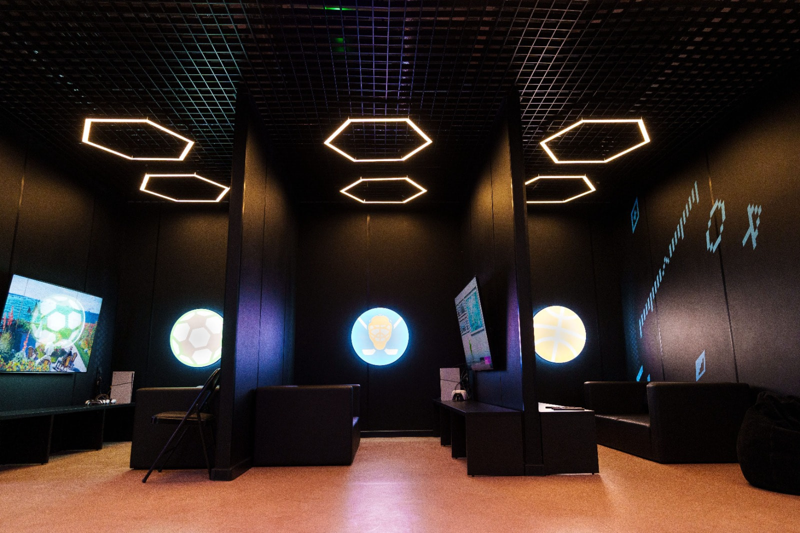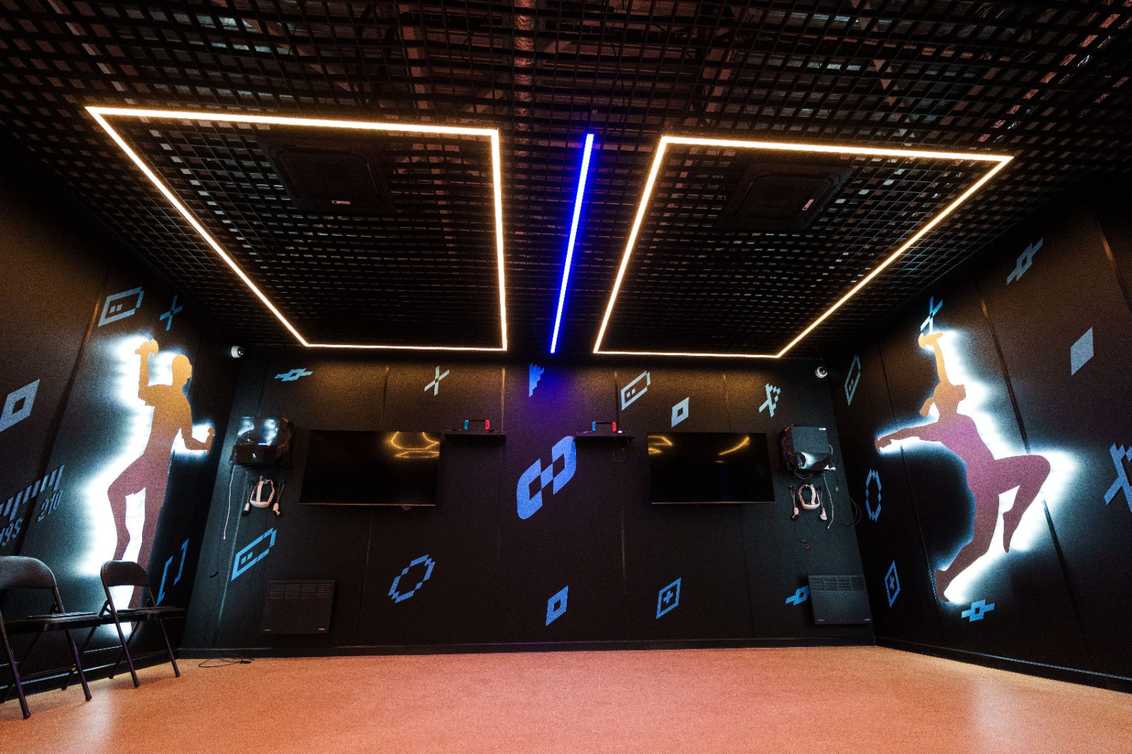 Геометрические фигуры из линейных профильных светильников со светодиодной лентой серий RTW и MOONLIGHT отлично вписываются в пространство центра. Минималистичные во внешнем исполнении, они создают основное освещение.