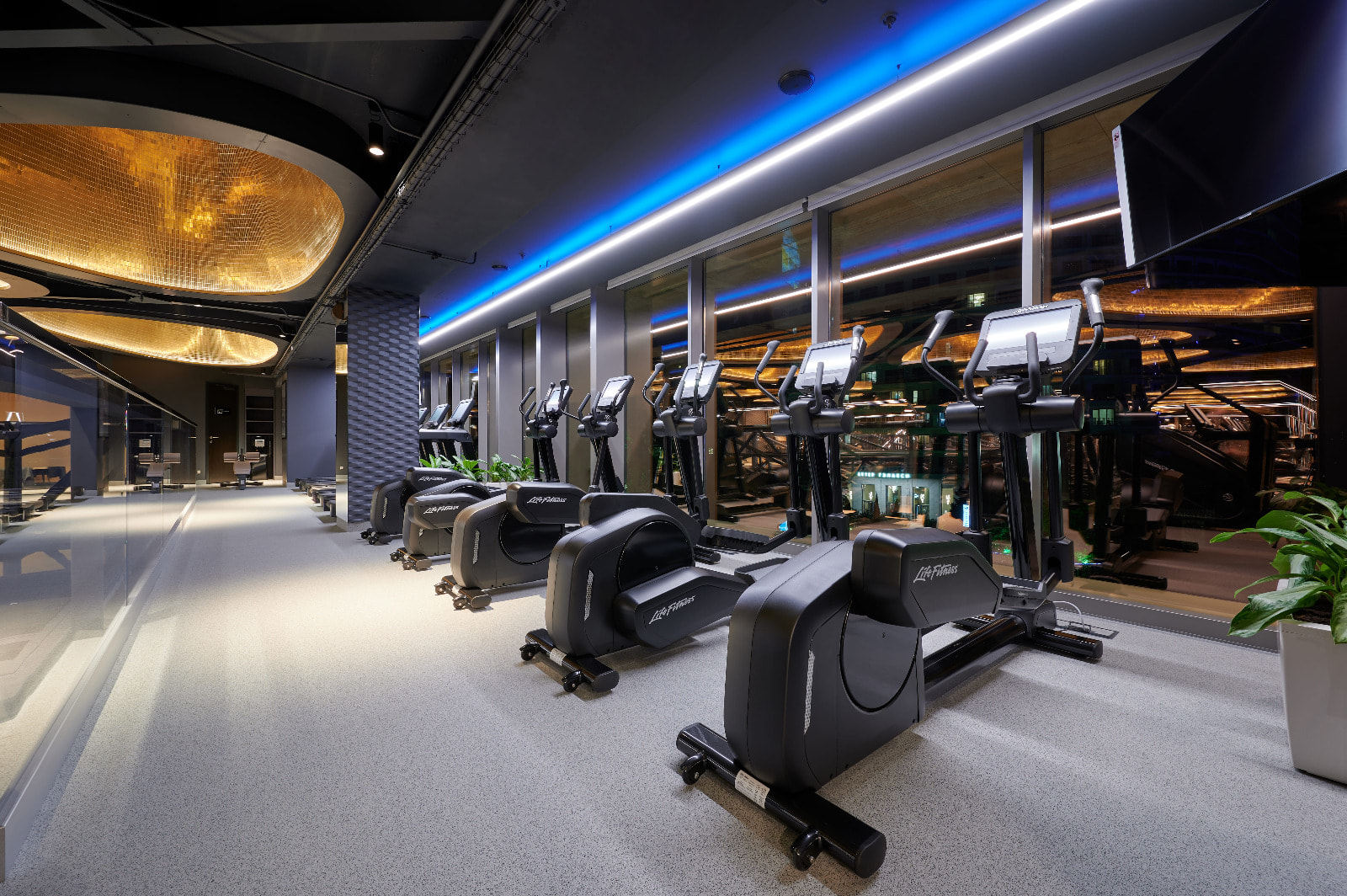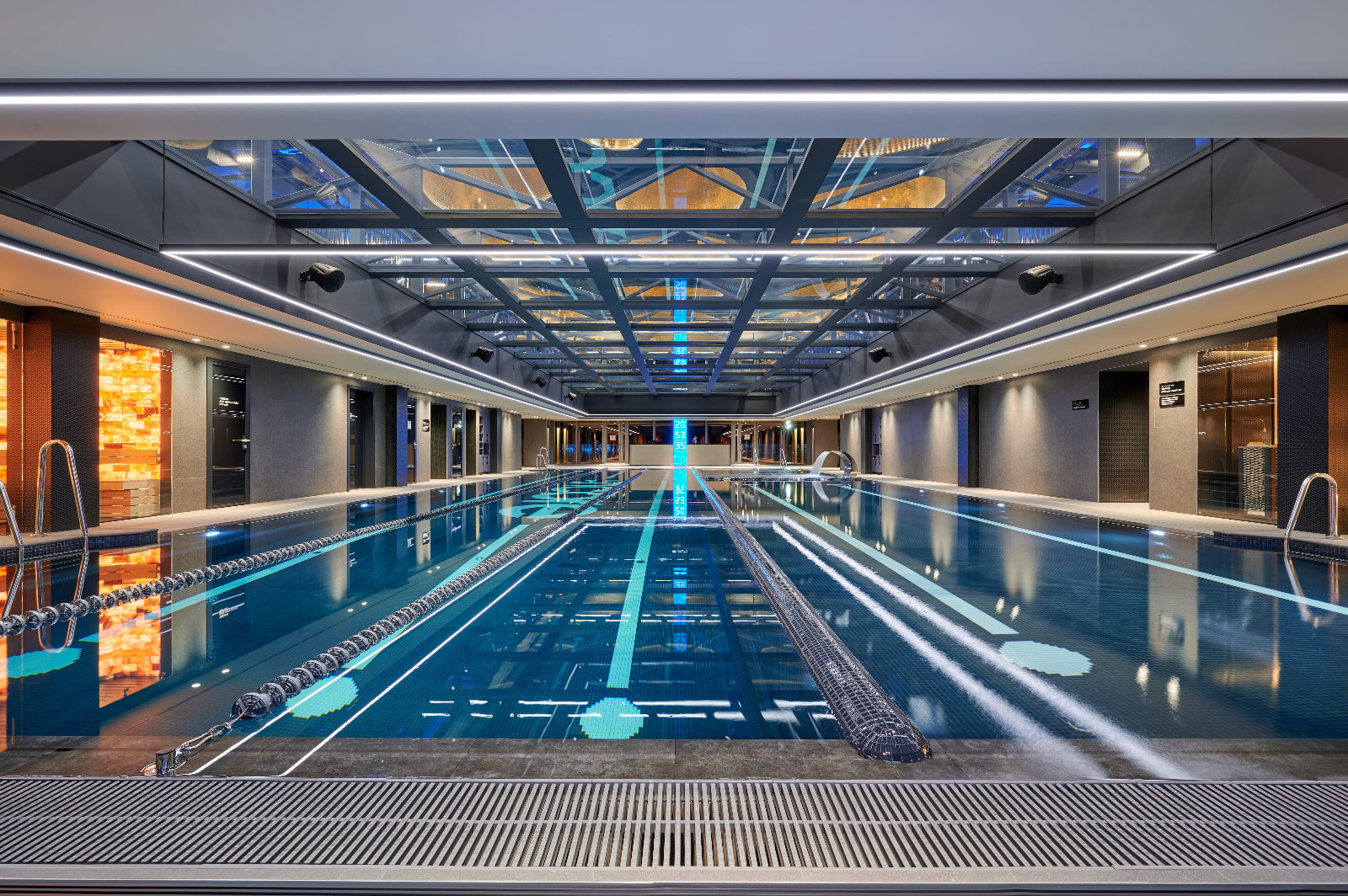 Фитнес-центр премиум-класса Encore Fitness состоит из нескольких этажей и включает в себя бассейн, термальные SPA-зоны, тренажерные залы, а также зал для занятий боевыми искусствами. Индивидуально для каждой зоны было разработано освещение с учетом всех нюансов проводимых в них активностей.