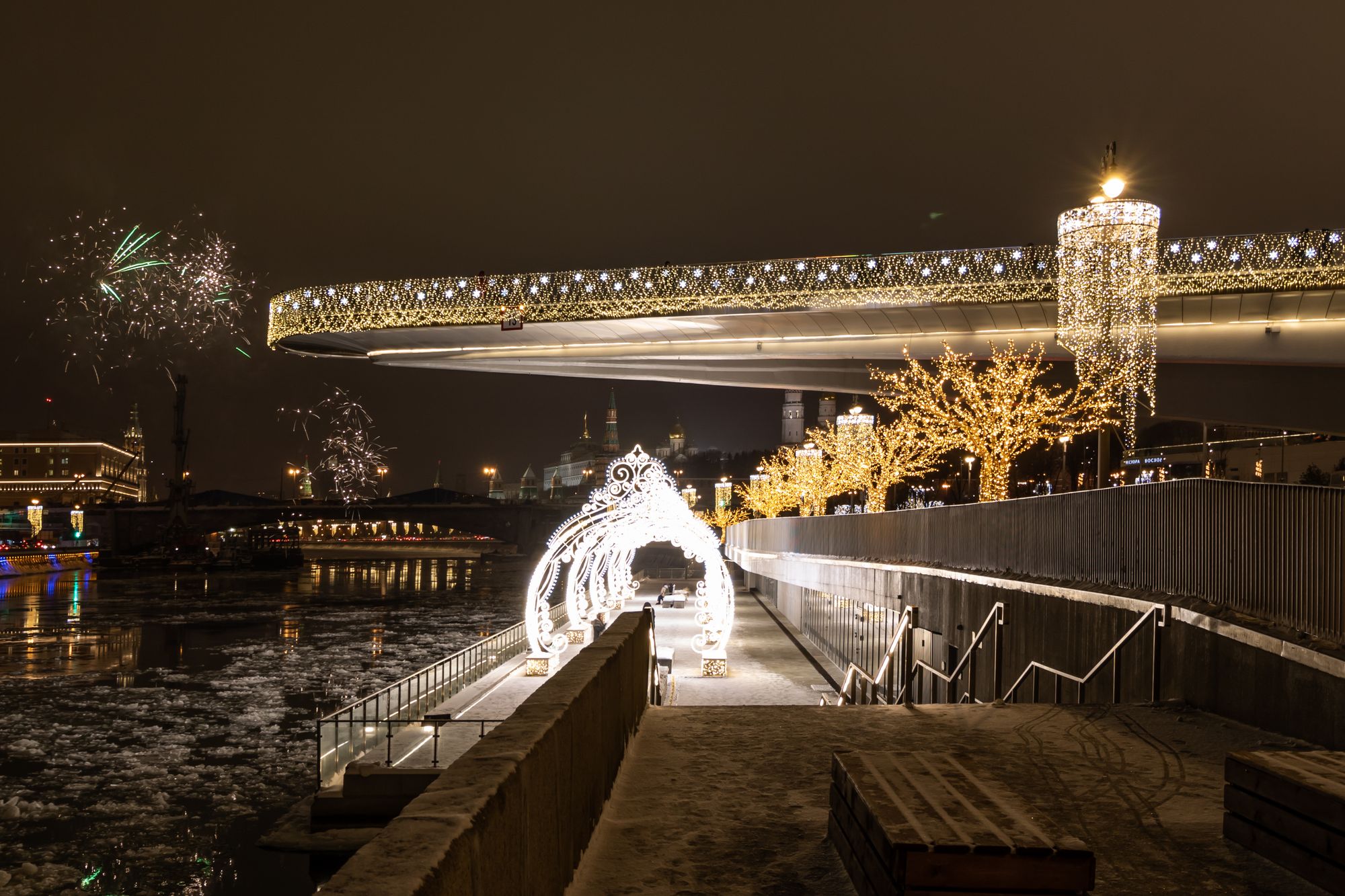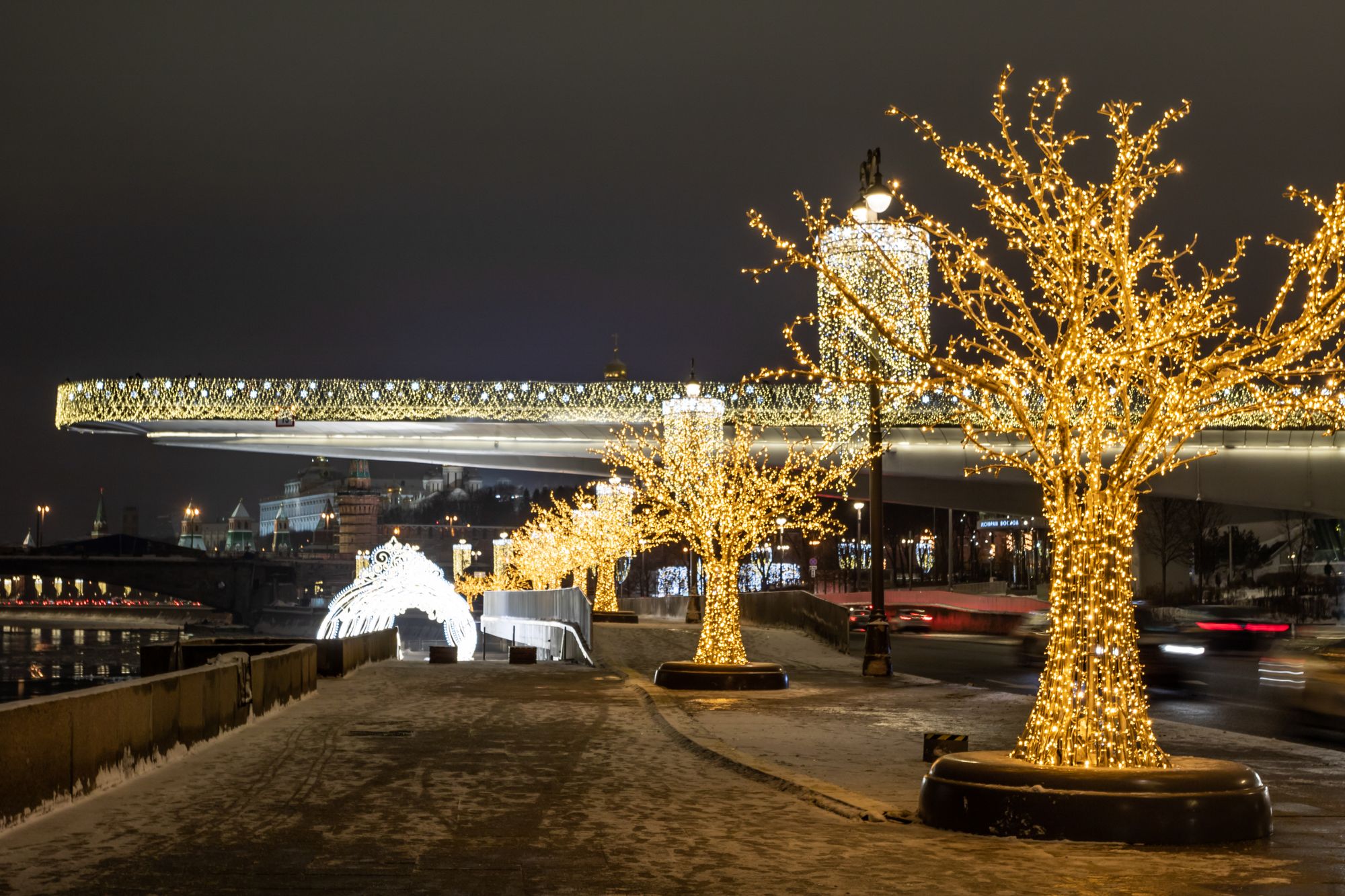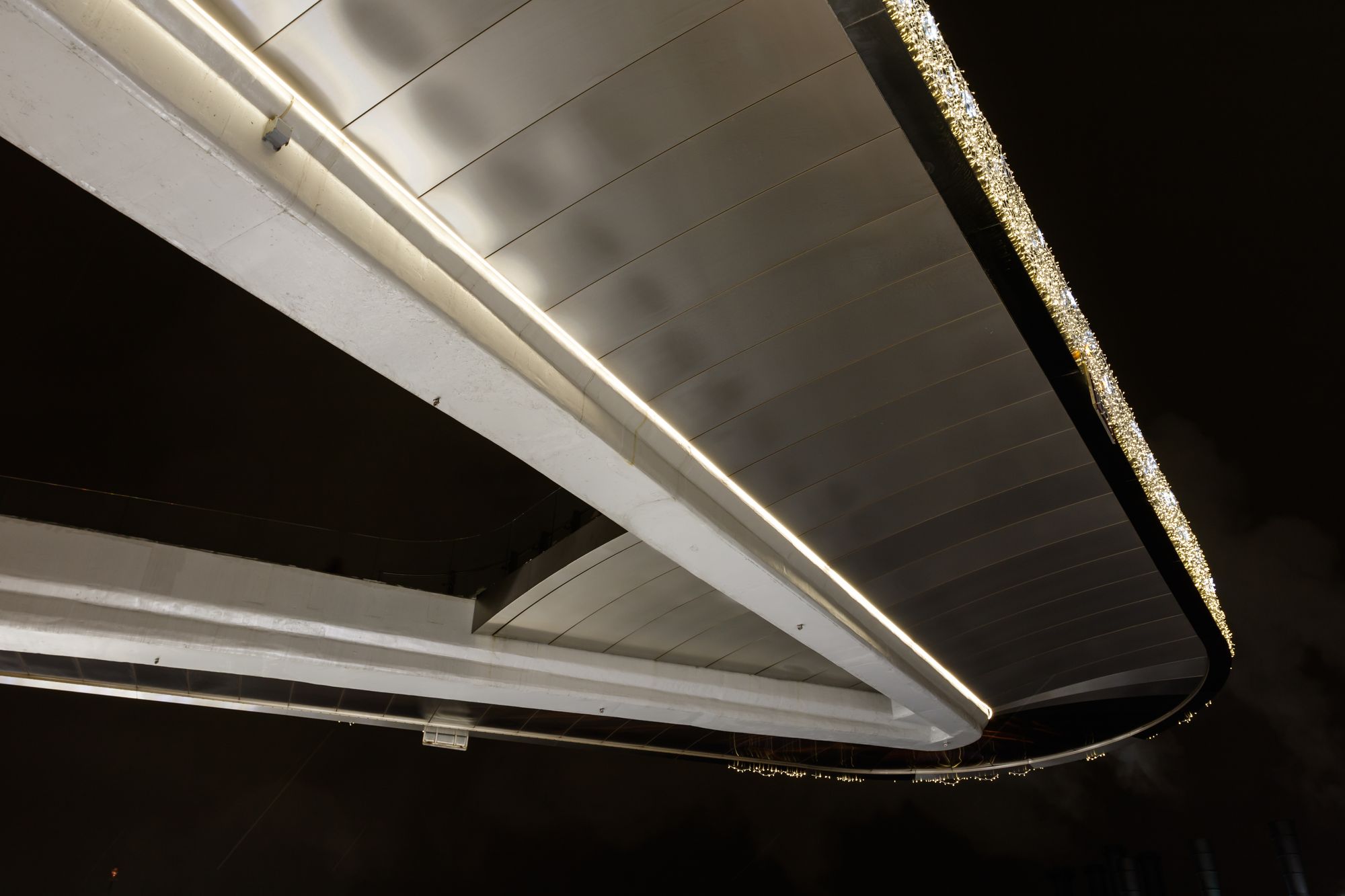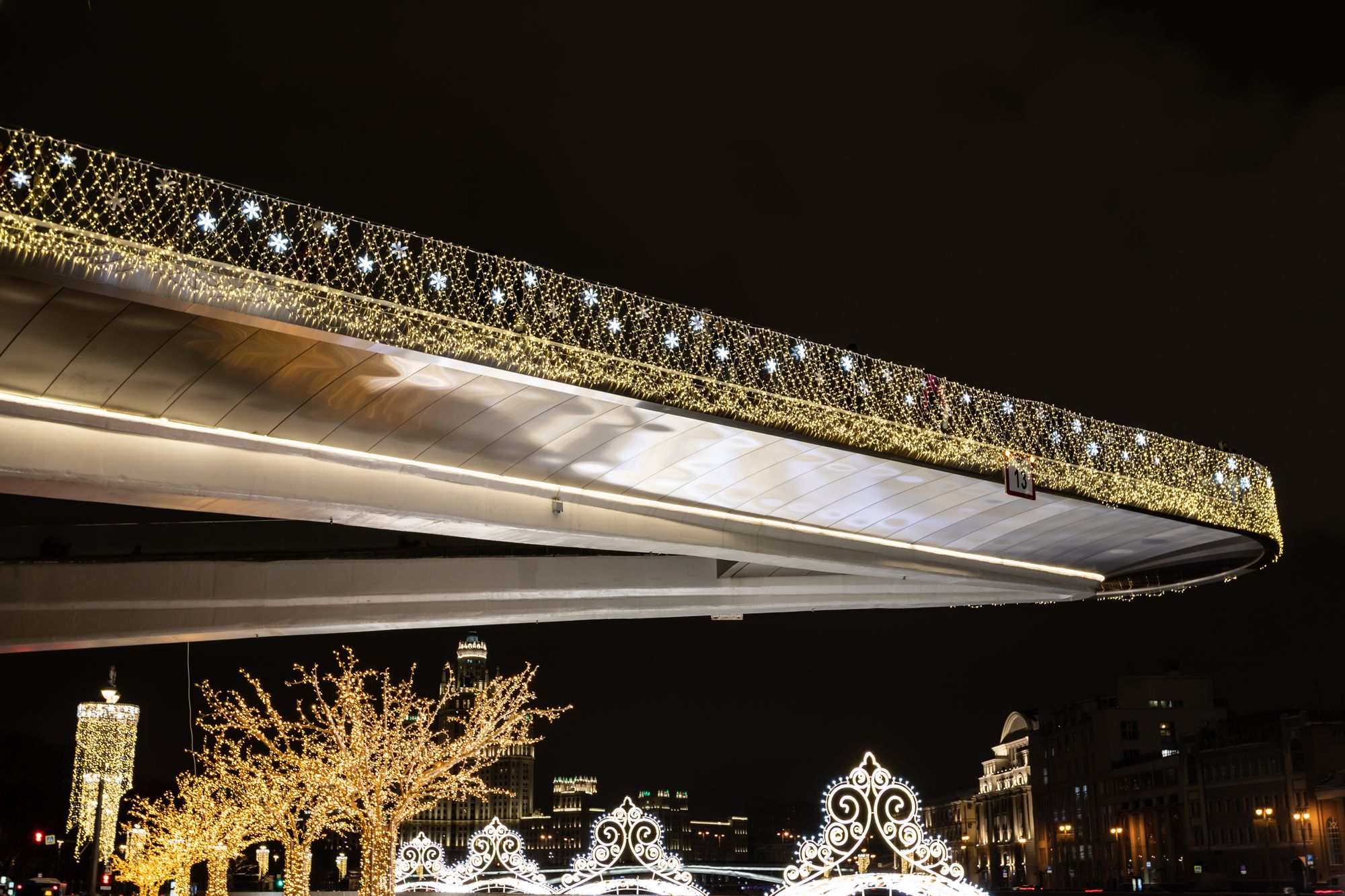 По всему периметру «парящего» моста организована светодиодная подсветка с использованием профилей и герметичных светодиодных лент. Эффектное и яркое декоративное освещение в сочетании с необычным архитектурным обликом моста становится центром притяжения гостей парка «Зарядье». В проекте использованы анодированные алюминиевые профили, устойчивые к неблагоприятным внешним воздействиям и коррозии. Светодиодные ленты с высокой степенью пылевлагозащиты обеспечивают надежную эксплуатацию при любых погодных условиях. Матовые рассеиватели помогают создать равномерное свечение, приятное для глаз.