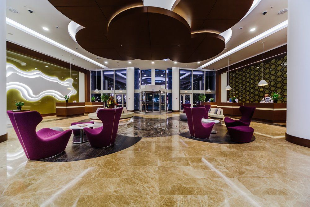 В основе проекта освещения премиального отеля — богатые интерьеры с многообразием цветовых оттенков. Декоративная подсветка и основное освещение в холле, ресторане и номерах созданы с помощью лент классического белого свечения, которые наполняют пространство приятным теплым светом. Для бара и SPA-зоны были выбраны многоцветные ленты, которыми можно управлять с помощью контроллеров и пультов. Во влажных помещениях используются герметичные RGB-ленты с высокой степенью пылевлагозащиты.
