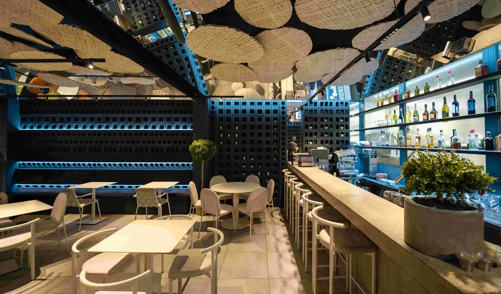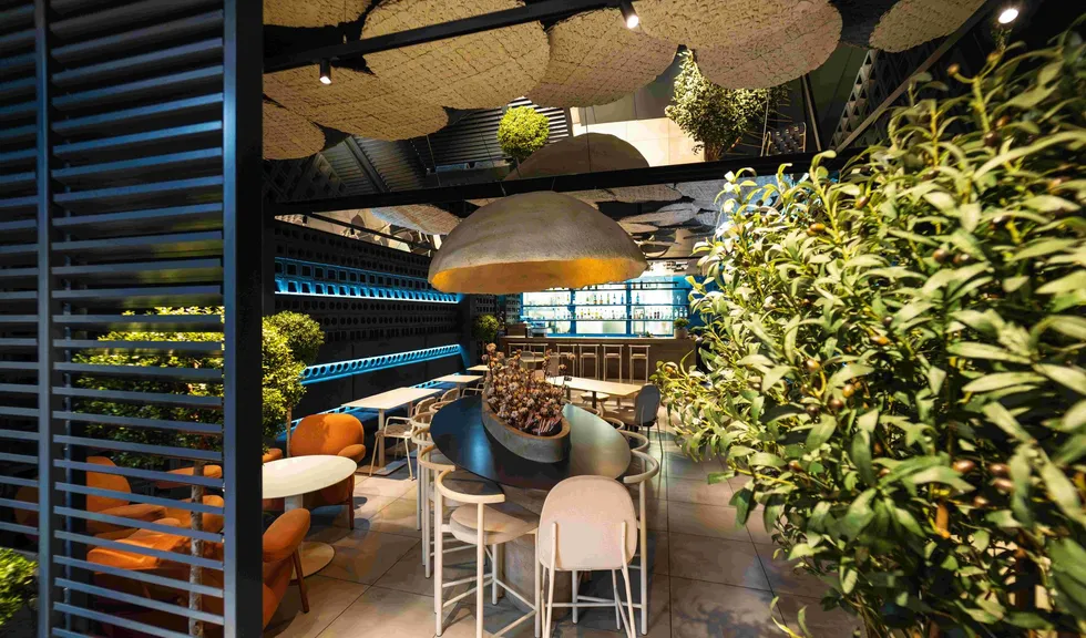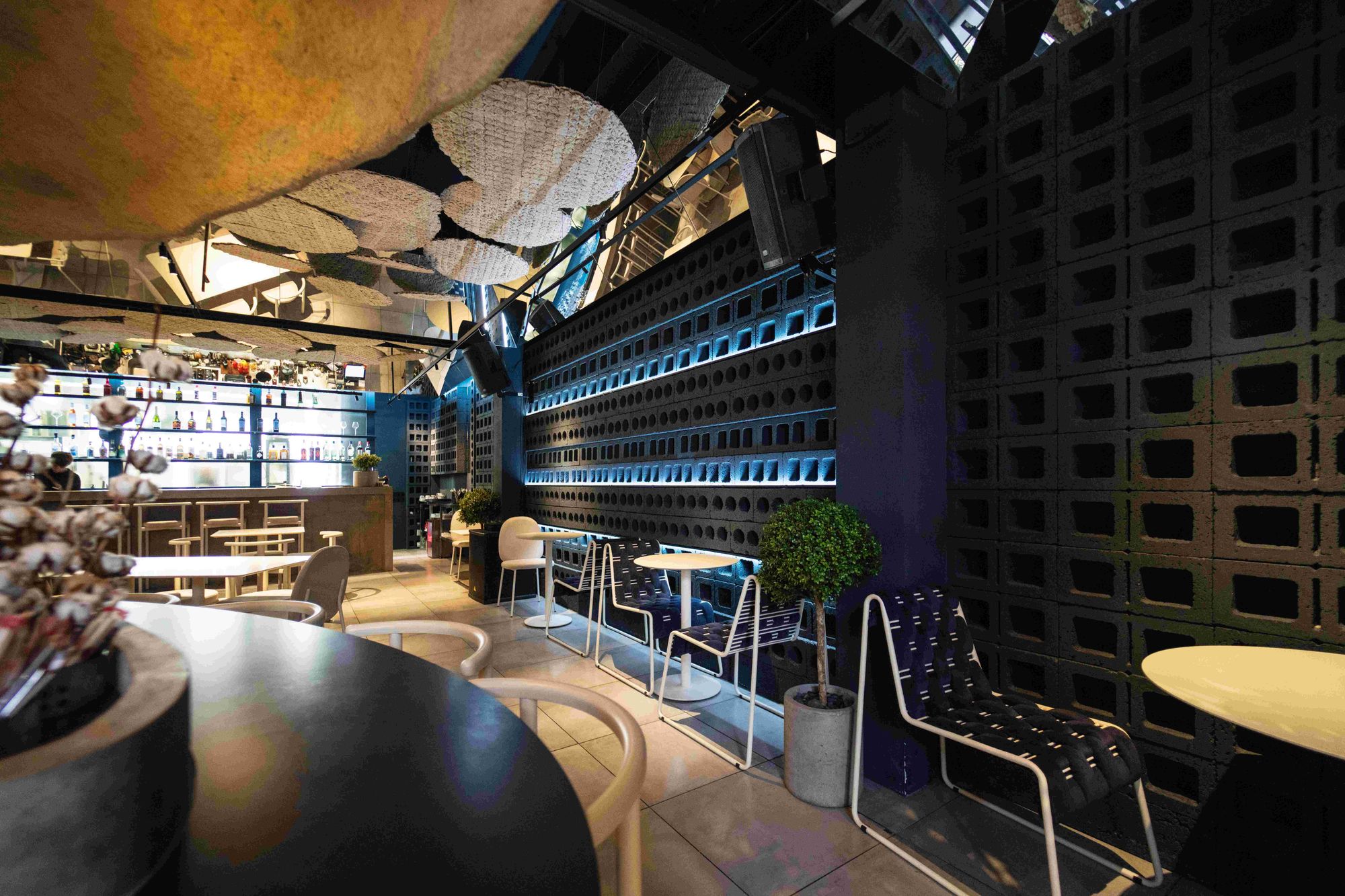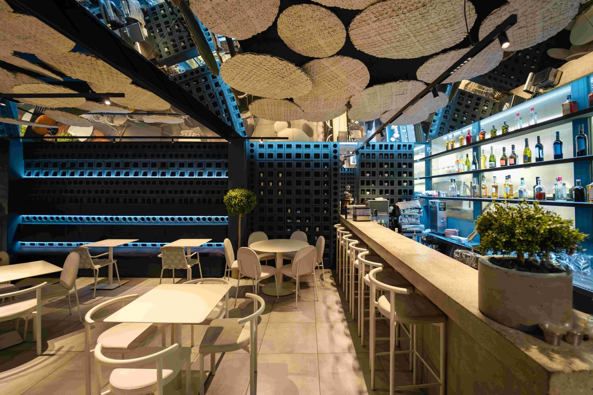 Помимо линейных светильников MAG DOTS, команда использовала споты MAG, даунлайты MS ATLAS и продукт серии DL-BL backlit, который обыграла с помощью объемного плафона необычной формы. Купол выполняет не только декоративную функцию, но еще помогает приглушить звуки и создать акустический комфорт в ресторане.